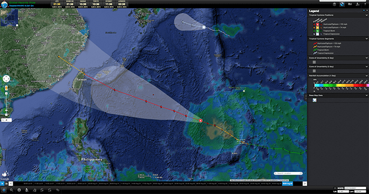 The Hazard Exposure tab provides the latest weather updates for the impacted area. This is especially useful for determining if inclement weather may adversely affect exposed populations and/or relief operations.