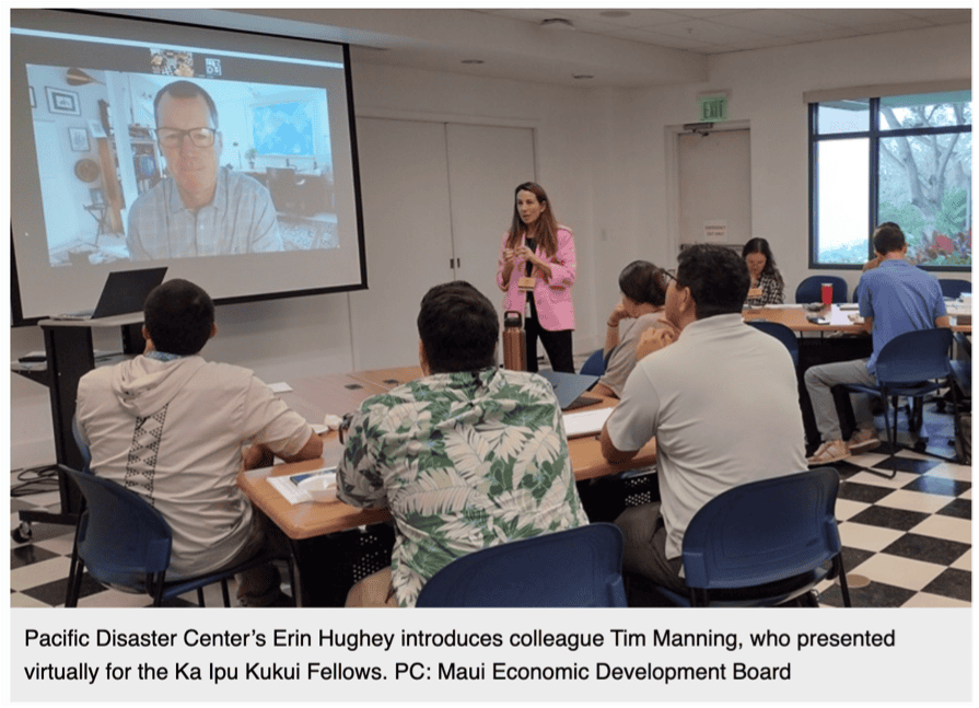 PDC remains dedicated to disaster preparedness education for all community members. In May 2024, Dr. Erin Hughey, PDC’s Deputy Executive Director, presented at Maui’s ProArts Playhouse, organized by the Kīhei Community Association. The presentation covered PDC’s scientific capabilities, including the Disaster Alert mobile app, and provided practical tips for disaster readiness.