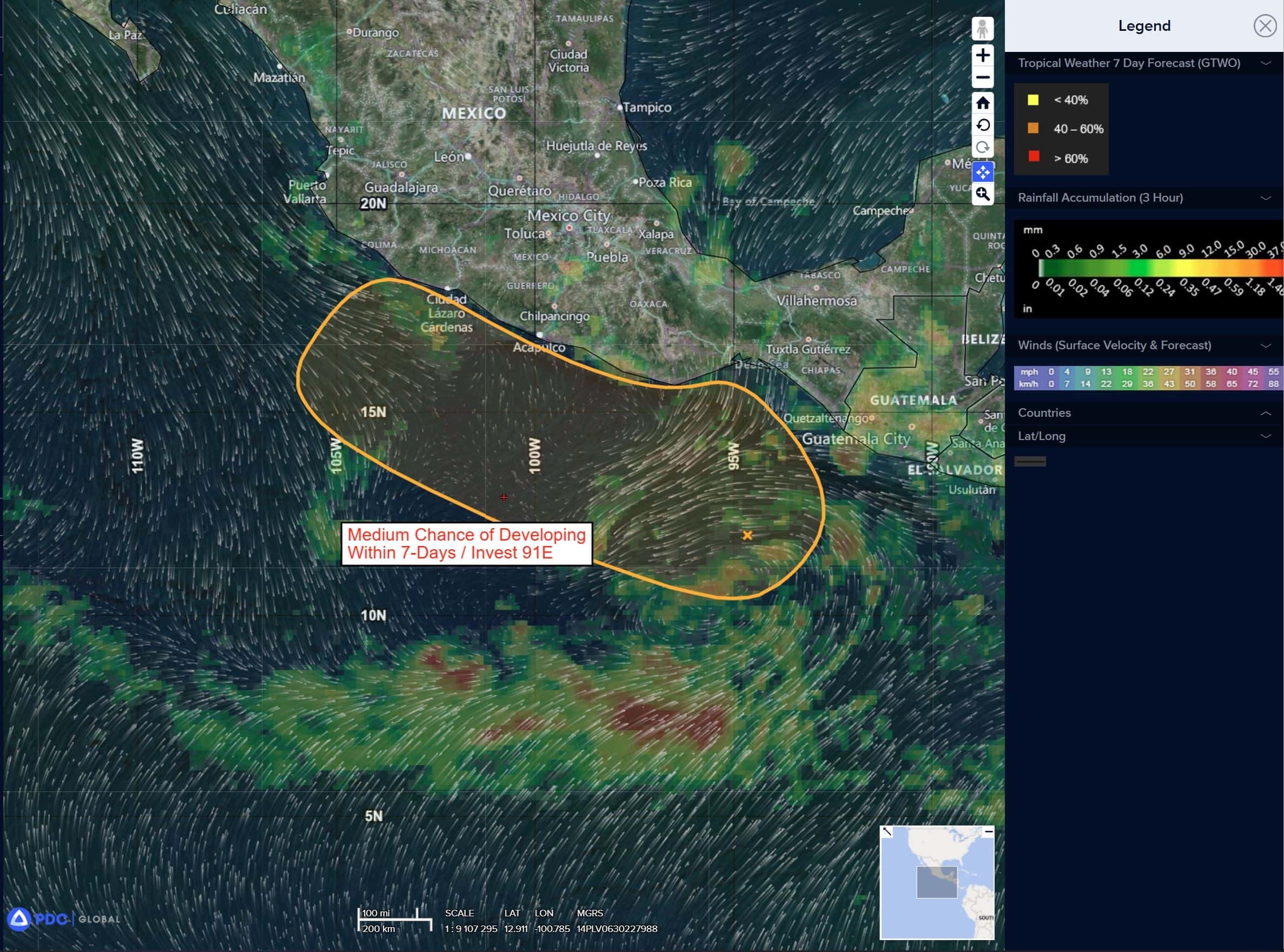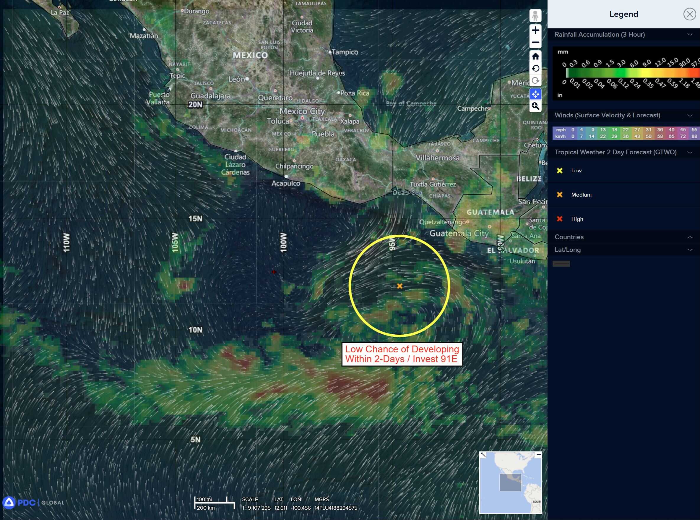 >>> A broad area of low pressure is producing some disorganized showers and thunderstorms offshore of southern Mexico and portions of Central America.