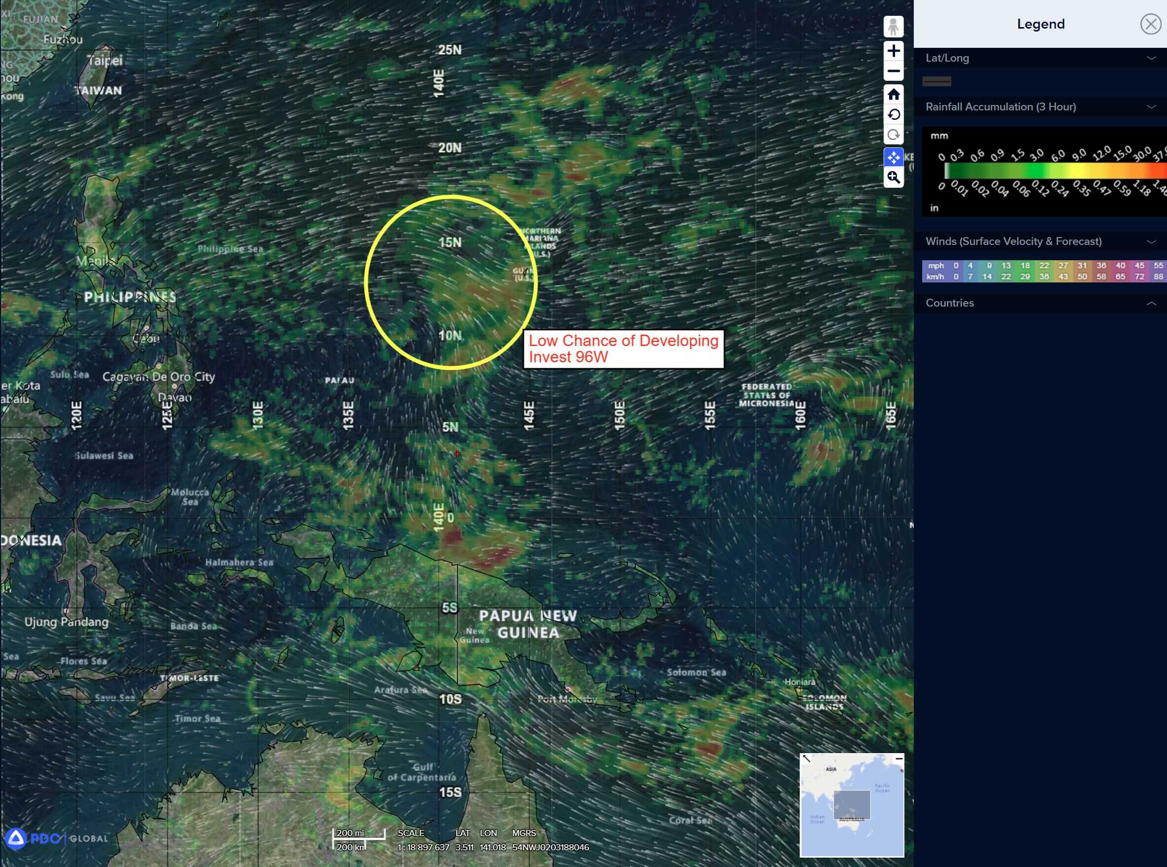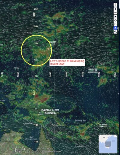 There’s an area of disturbed weather being referred to as Invest 96W, which is located approximate 160 NM west of Guam