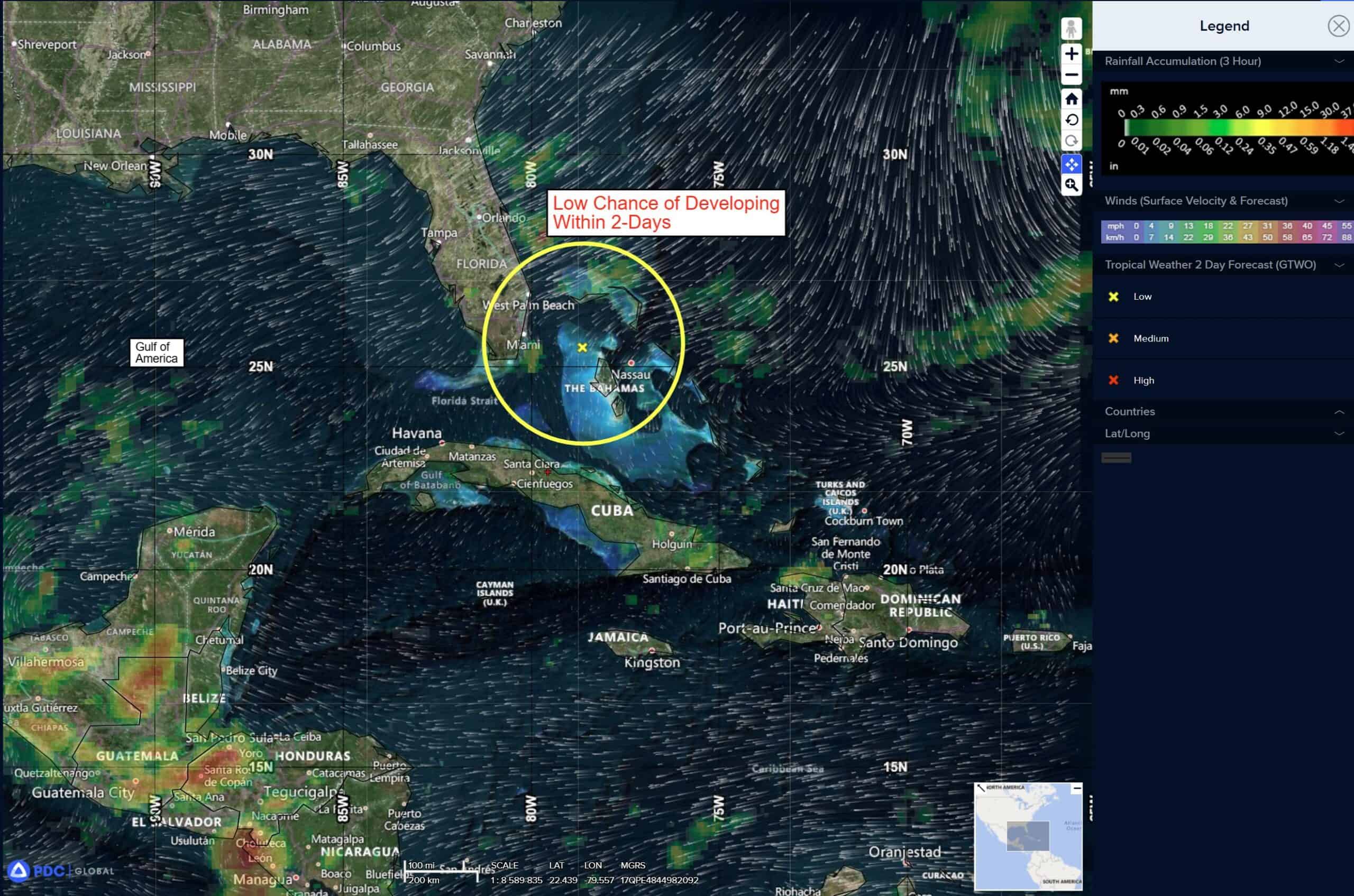 >>> An area of low pressure may form along a remnant frontal boundary near the northwestern Bahamas and southern Florida during the next day or two. Any additional development is expected to be slow to occur as the system moves northwestward across the Florida Peninsula and into the Gulf of America.
