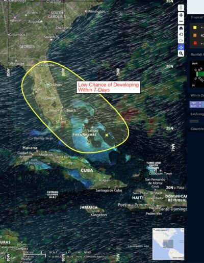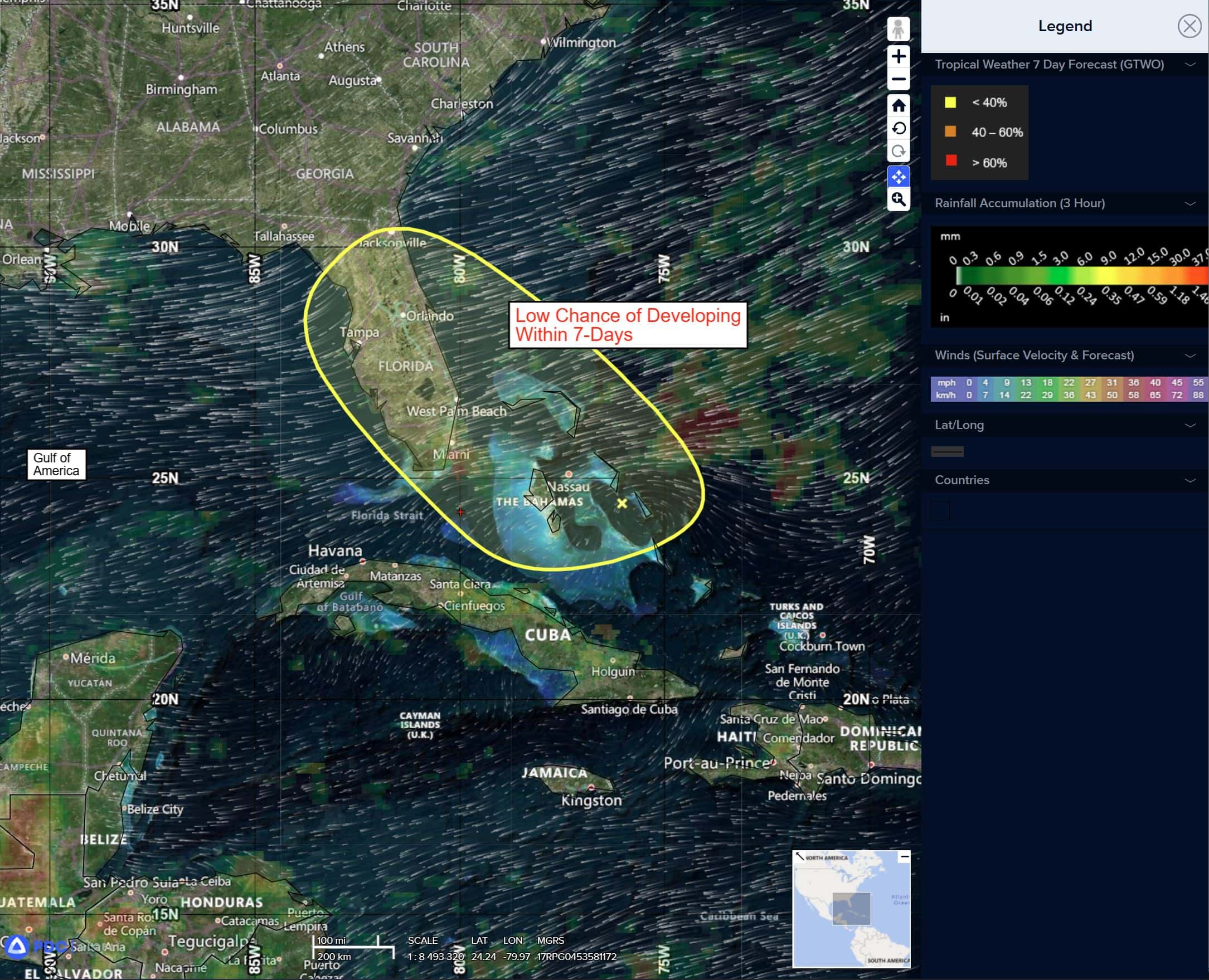 Strong upper-level winds are expected to prevent significant development of the low, however the combination of the disturbance with the broader remnant boundary are still expected to produce heavy rainfall across portions of Florida and the Bahamas through the weekend.