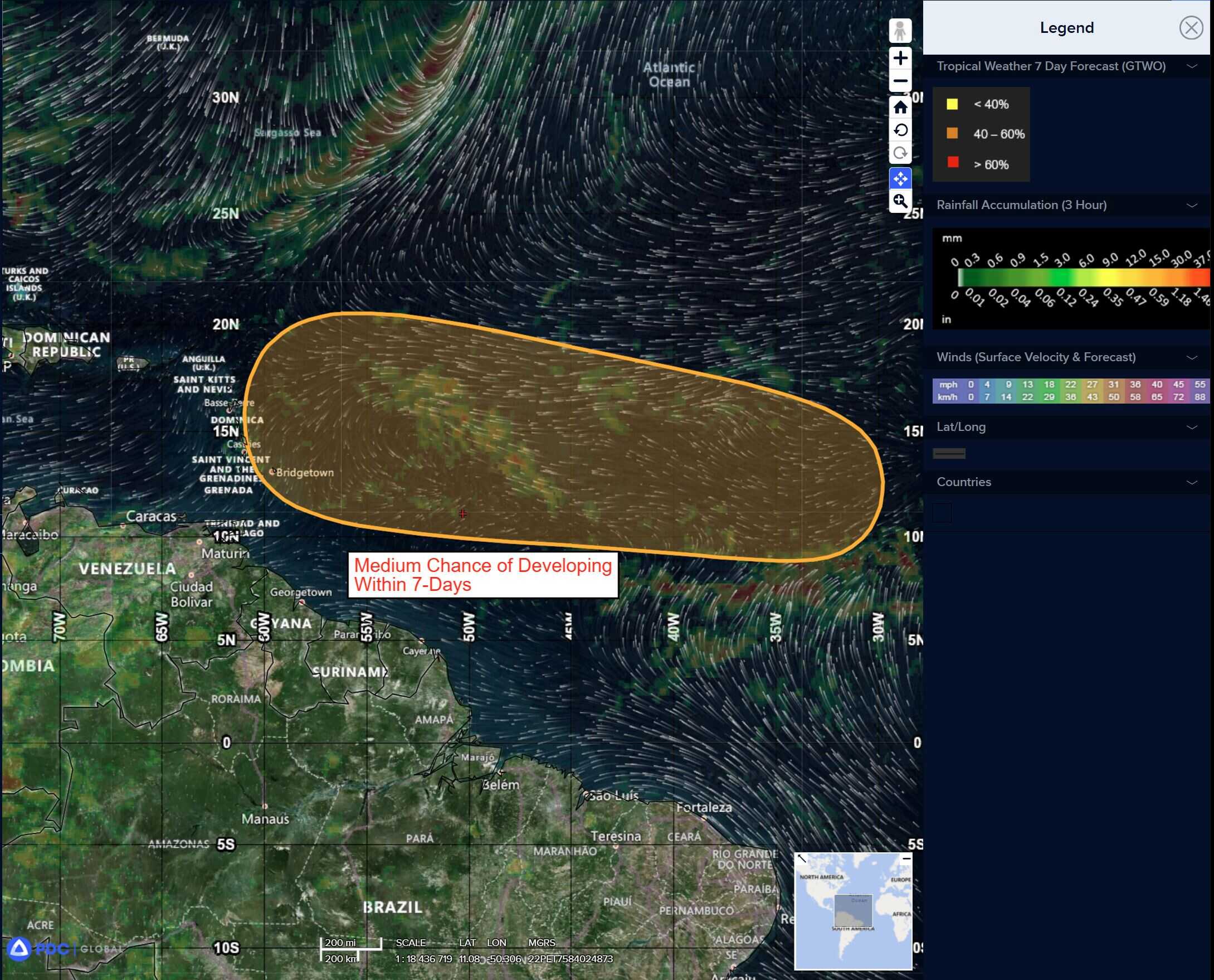 Environmental conditions are expected to become conducive for some slow development of the system in a few days, and a tropical depression could form near or east of the Lesser Antilles by the end of next week.