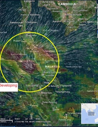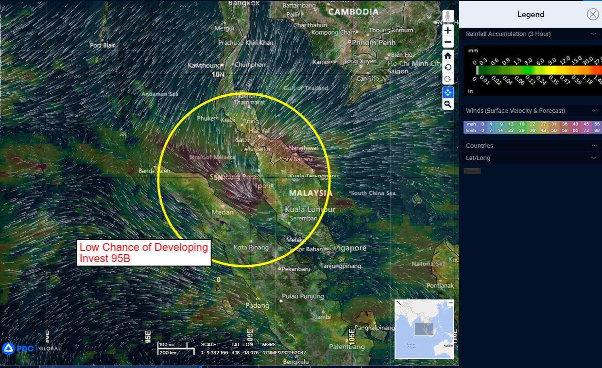 >>> There’s an area of disturbed weather being referred to as Invest 95B, which is located approximately 334 NM northwest of Singapore.