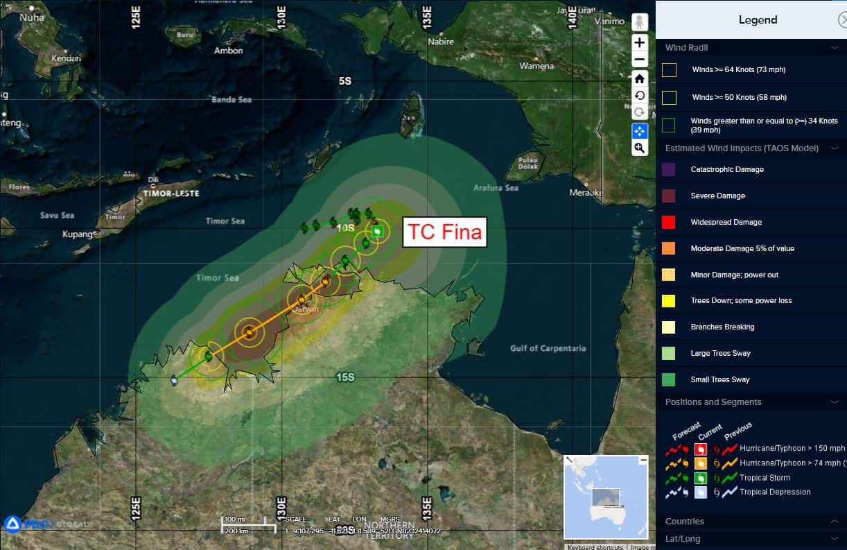 Tropical Cyclone 05S (Fina)…is located 202 NM northeast of Darwin, Australia