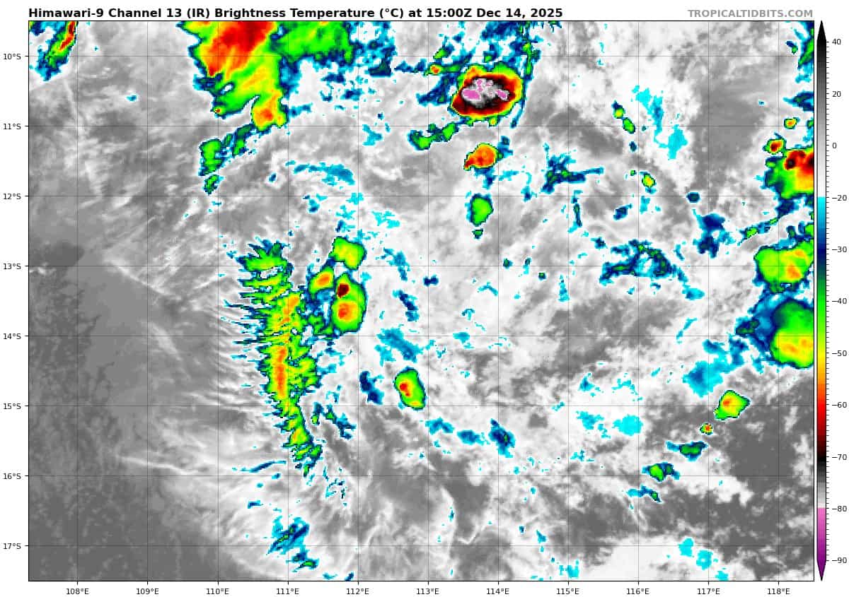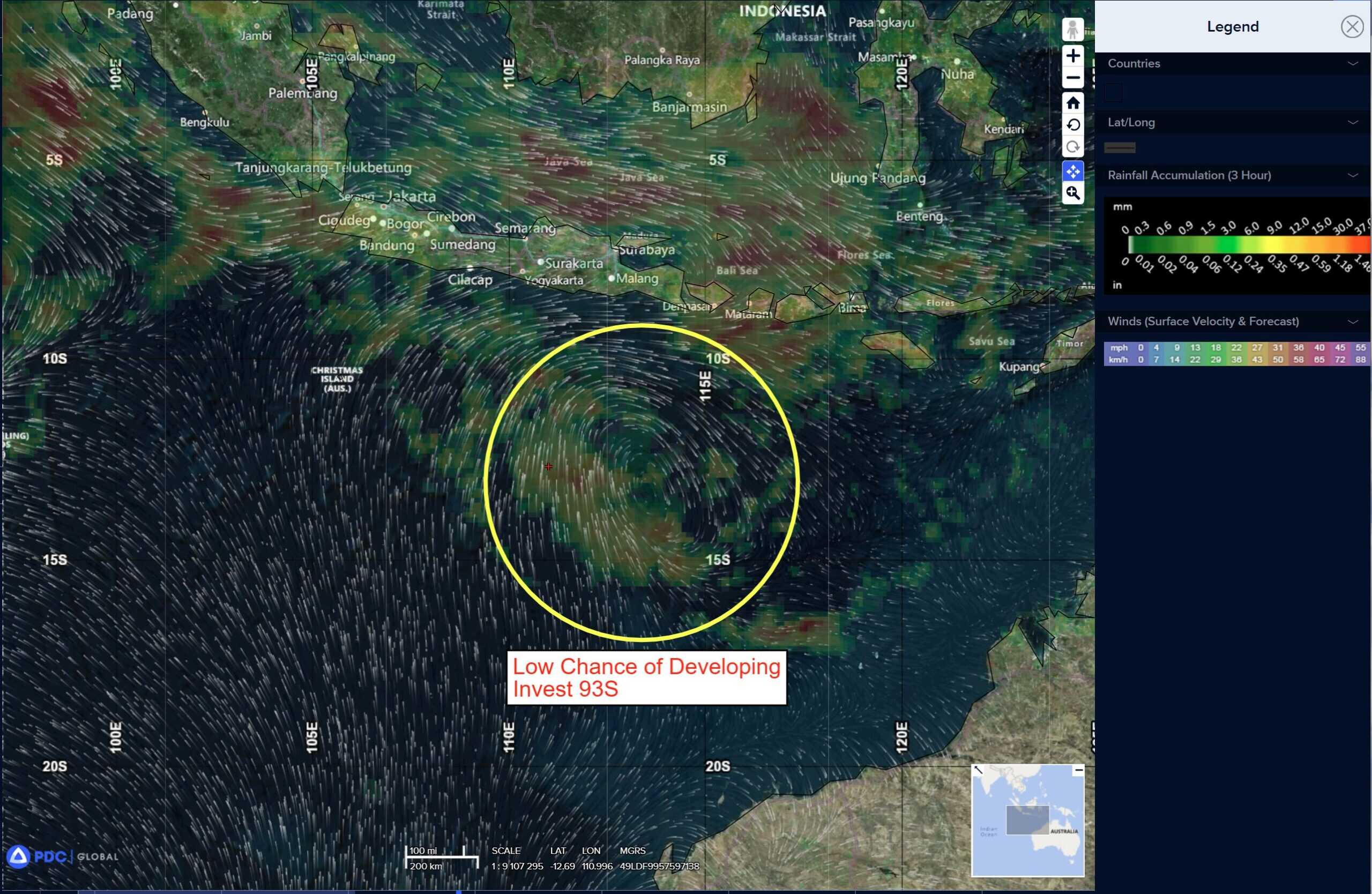 >>> There’s an area of disturbed weather being referred to as Invest 93S, which is located approximately 443 NM east-southeast of Christmas Island