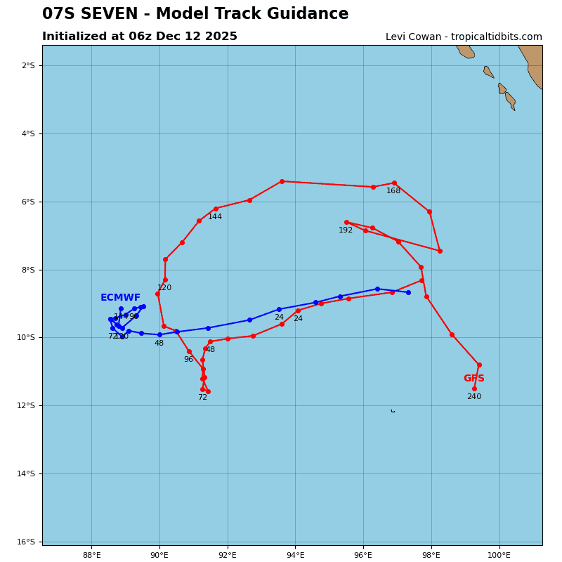 TC 07S is expected to track west-southwestward through 36 hours. Beginning around 36 hours, a major shortwave trough will begin to weaken the steering ridge to the south of the system, leading to a weak and competing steering environment. As a result, 07S will drift slowly west-southwestward and stall between 48-96 hours, until the near equatorial ridge (ner) becomes the dominant steering influence. Near the end of the forecast period, the ner will cause 07S to drift eastward through 120 hours.