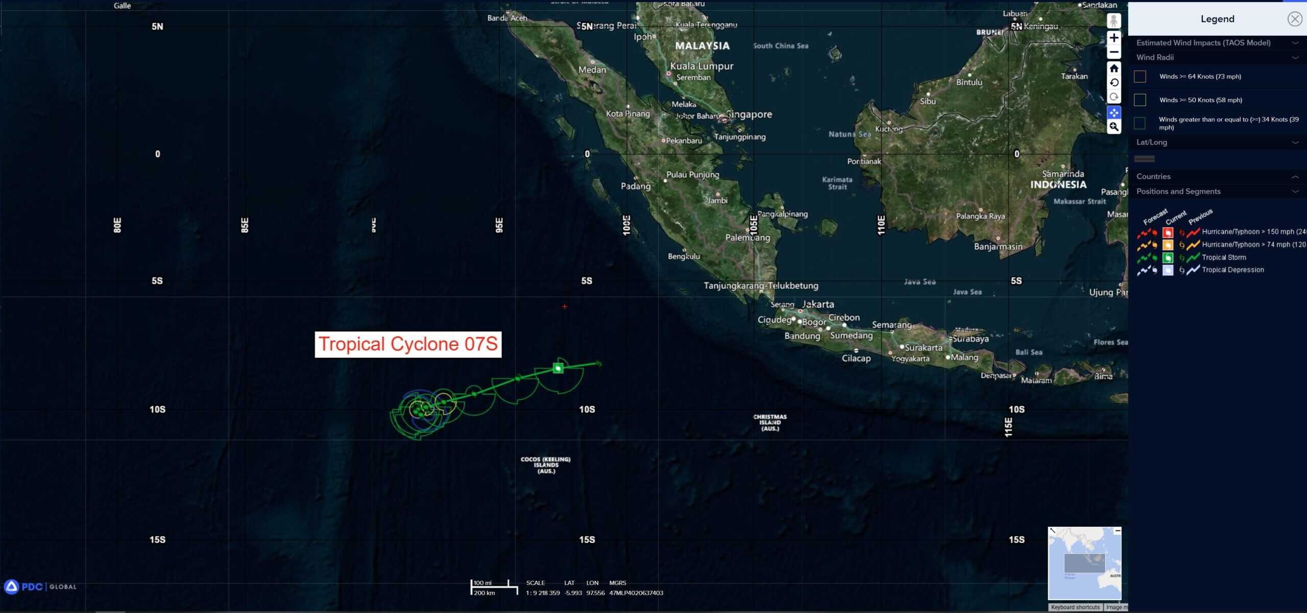 Tropical Cyclone 07S (Bakung) is located approximately 236 NM north-northwest of the Cocos Islands