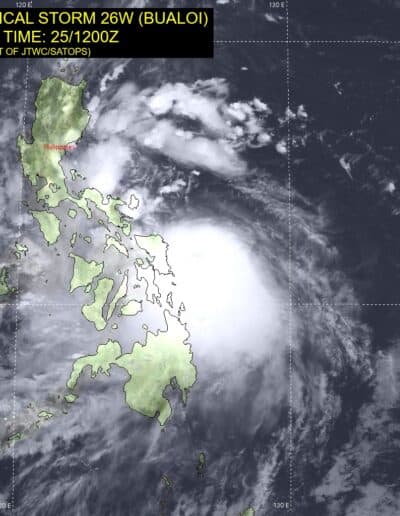 Tropical Cyclone 26W (Bualoi) is located approximately 373 NM east-southeast of Manila, Philippines