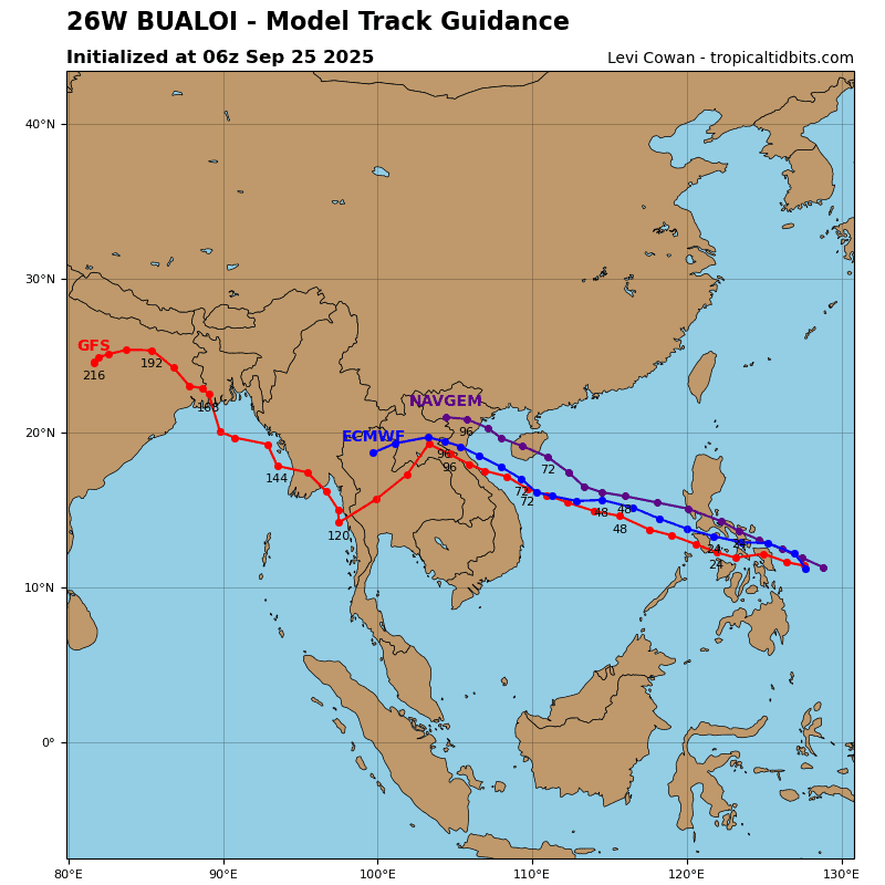 After 36 hours, 25W is expected to loop back to the northeast and continue a northeastward track motion until it becomes fully