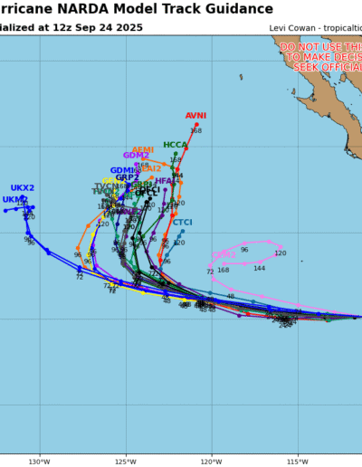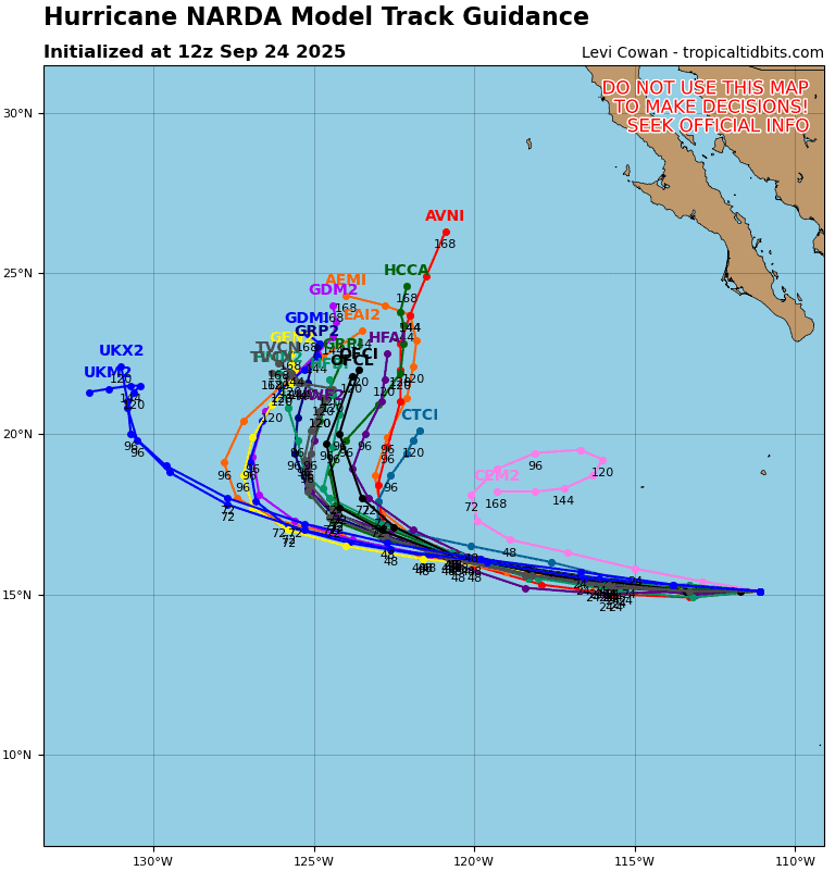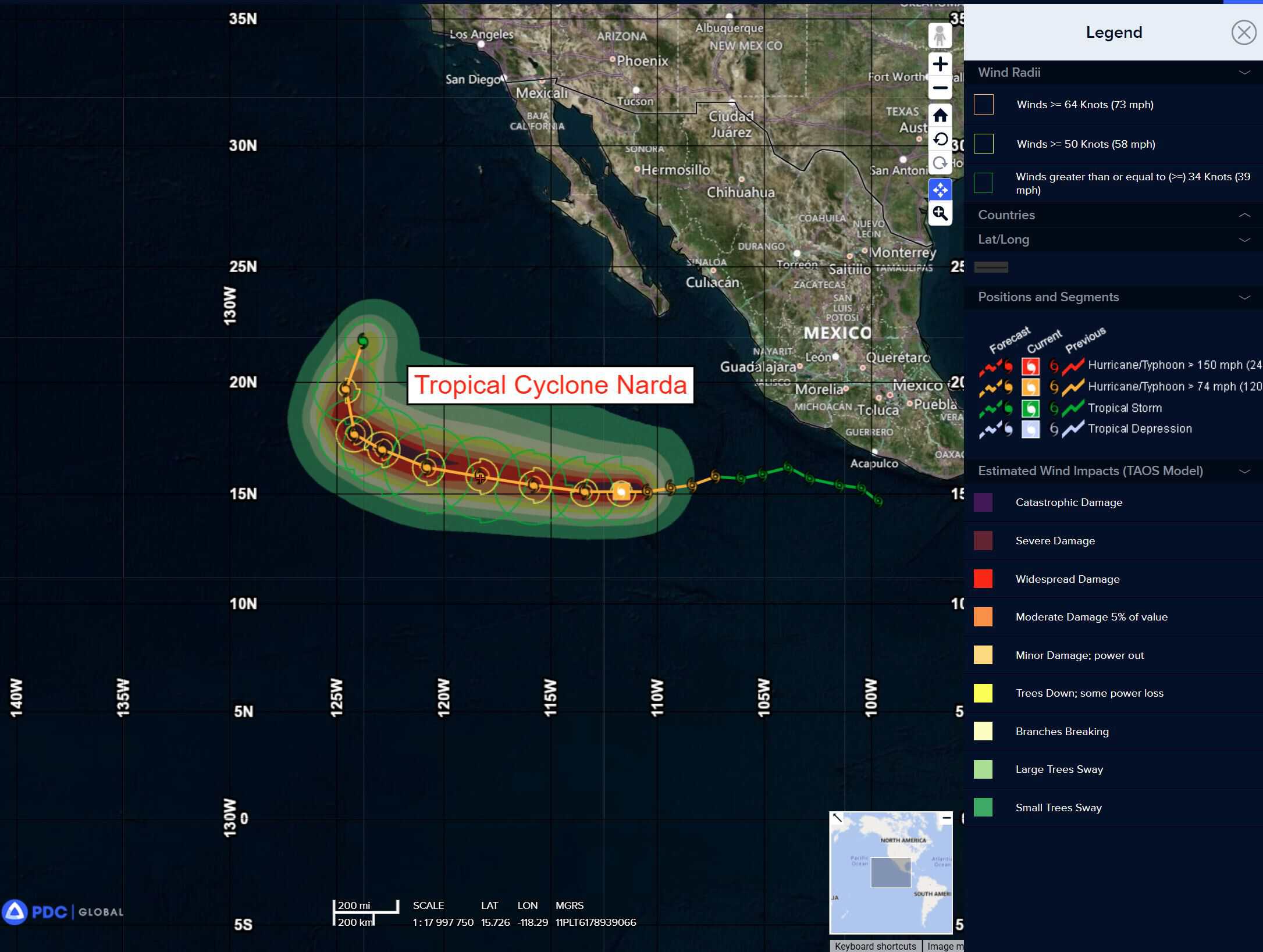 Surf: Swells generated by Narda are affecting portions of the coast of southwestern and west-central Mexico, and are expected to spread to portions of Baja California Sur late this week through the weekend. These swells are likely to cause life-threatening surf and rip current conditions.