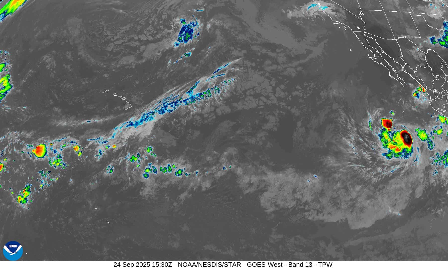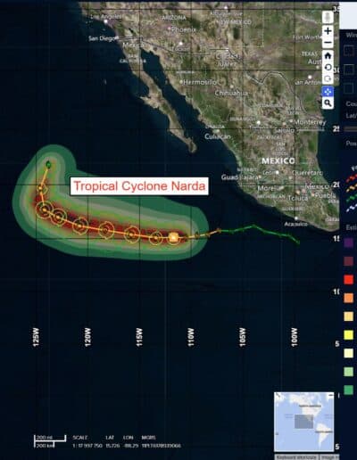 Tropical Cyclone 14E (Narda) is located approximately 550 NM south-southwest of the southern tip of Baja CA