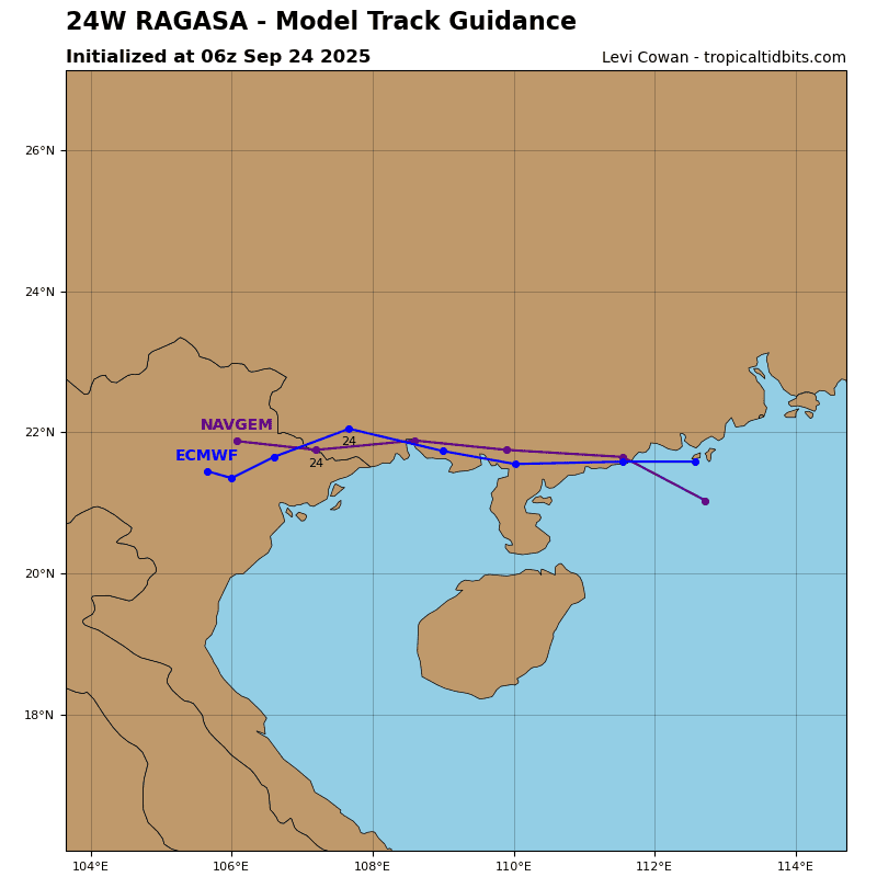 Within the next 12 hours the system will pass near the waters of South China Sea, just west of the Leizhou Peninsula, however majority of available guidance indicates track just north of open water.