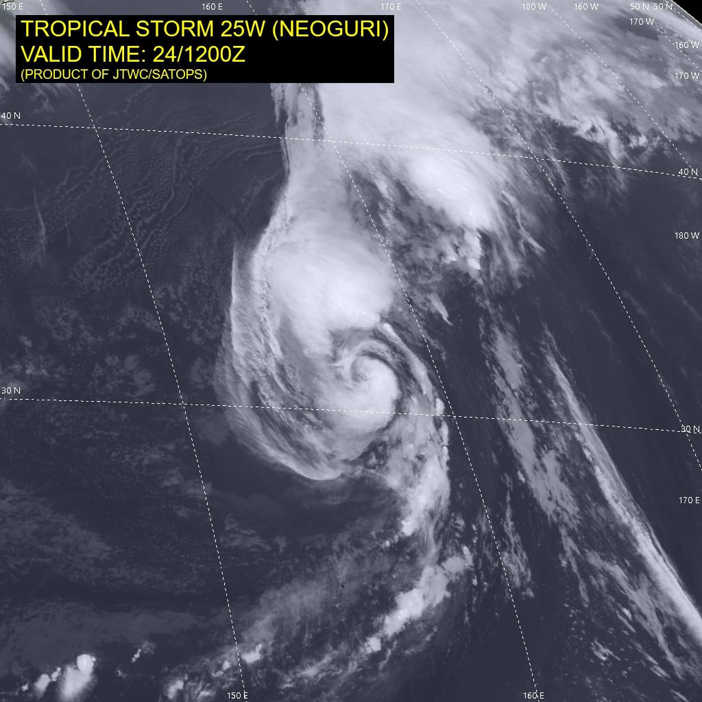 Tropical Cyclone 25W (Neoguri) is located approximately 446 NM north-northeast of Minami Tori Shima