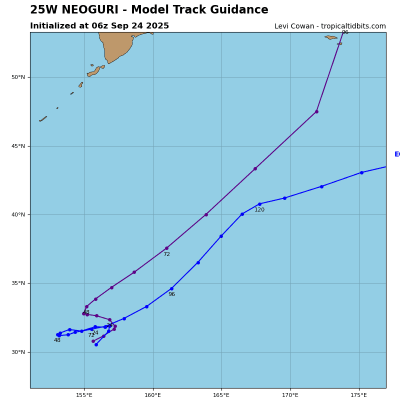 The aforementioned upstream trough will reintroduce high vertical wind shear at 72 hours that will continue through the end of the forecast period. Baroclinic forcing as the system begins extratropical transition at 72 hours will slightly increase the intensity, leading TS 25W to be a 60 knot extratropical cyclone by the end of the forecast period.