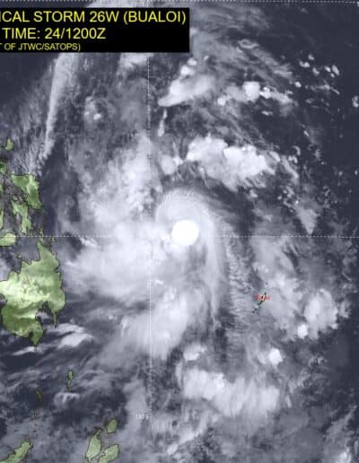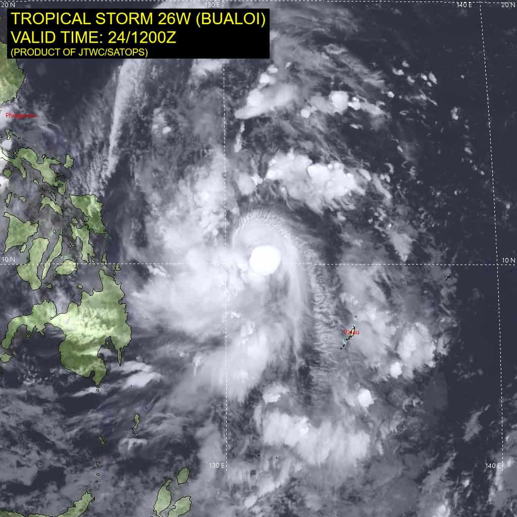 Animated enhanced infrared (eir) satellite imagery depicts tropical storm 26w (bualoi) continuing to intensify as it transits