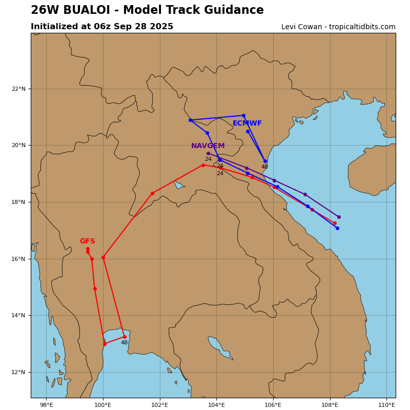 The system is forecast to continue to track northwestward while rapidly weakening as it tracks into Laos and ultimately dissipates over northeastern Myanmar by 36 hours.