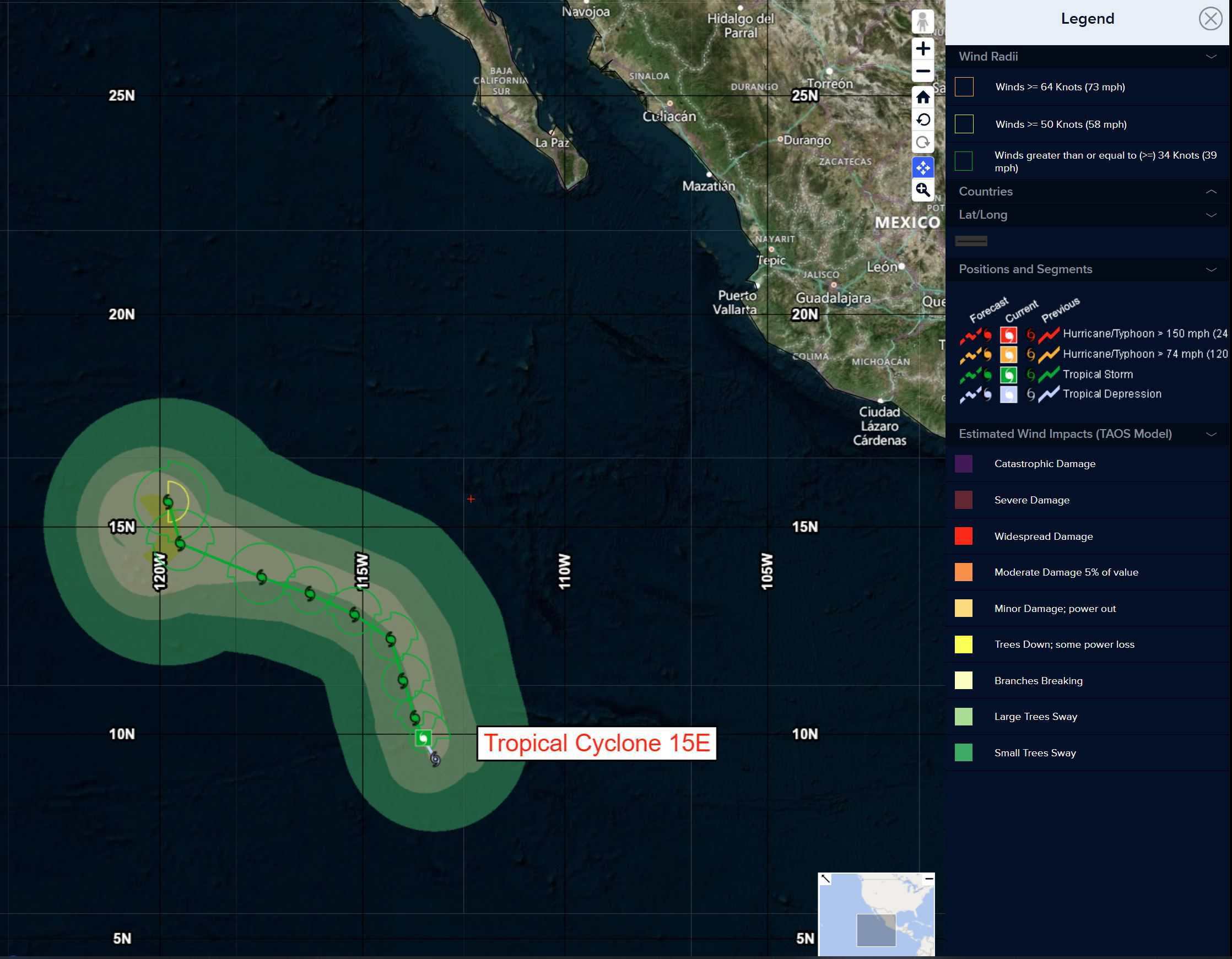 Tropical Cyclone 15E (Octave) is located about 885 miles south-southwest of the southern tip of Baja California