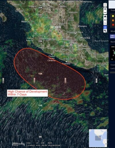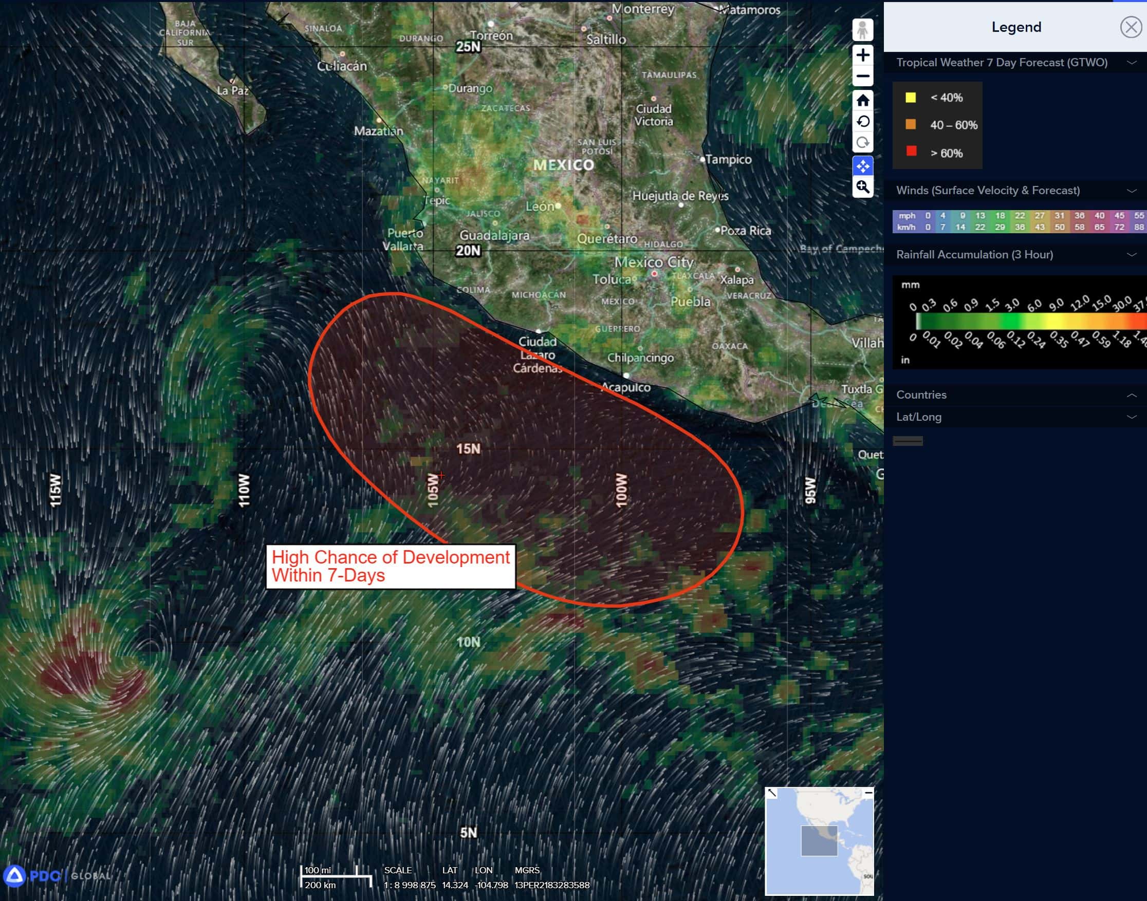 >>> An area of low pressure is expected to form off the coast of southwestern Mexico in a couple of days. Thereafter, environmental conditions are expected to be conducive for additional development, and a tropical depression will likely form late this week or this weekend while the system moves generally west-northwestward, parallel to but offshore of the southwestern coast of Mexico.