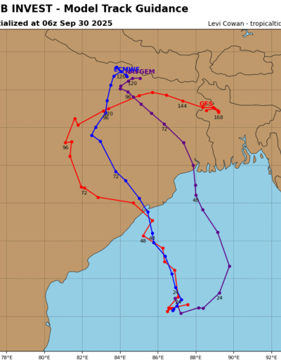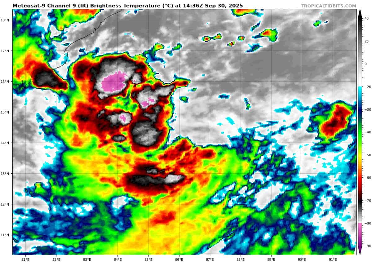 >>> There’s an area of disturbed weather being referred to as Invest 91B, which is located approximately 265 NM southeast of Visakhapatnam