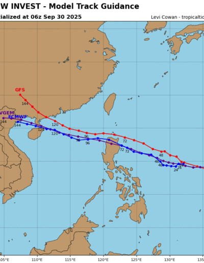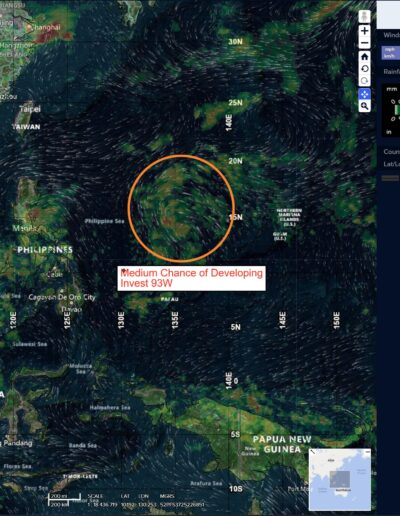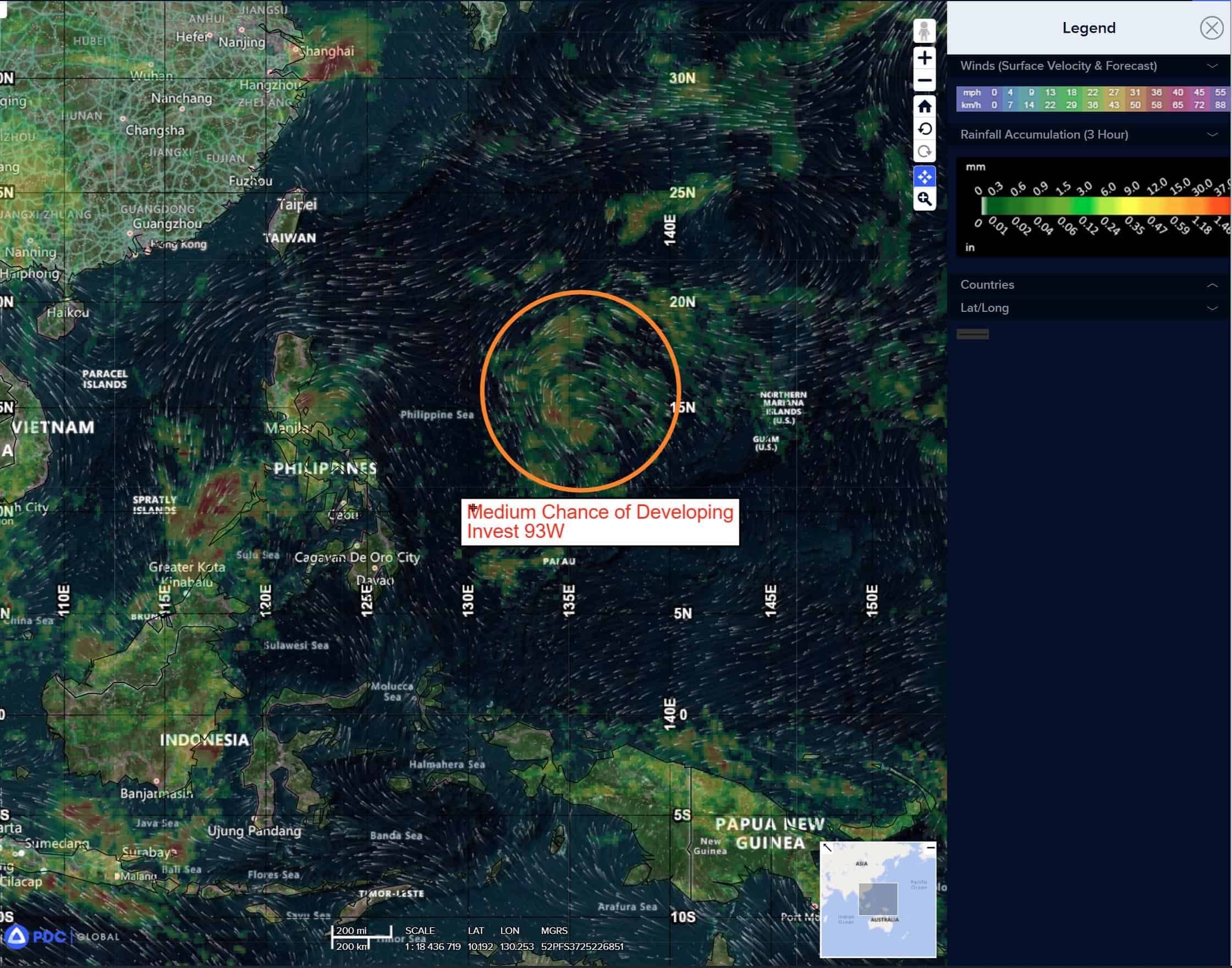 >>> There’s an area of disturbed weather being referred to as Invest 93W, which is located approximately 633 NM east of Manila