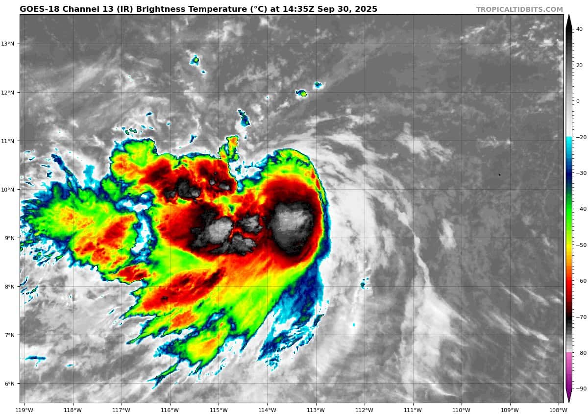 Animated enhanced infrared (eir) satellite imagery depicts an exposed low level circulation center (llcc) with persistent convection displaced to the west of the llcc.