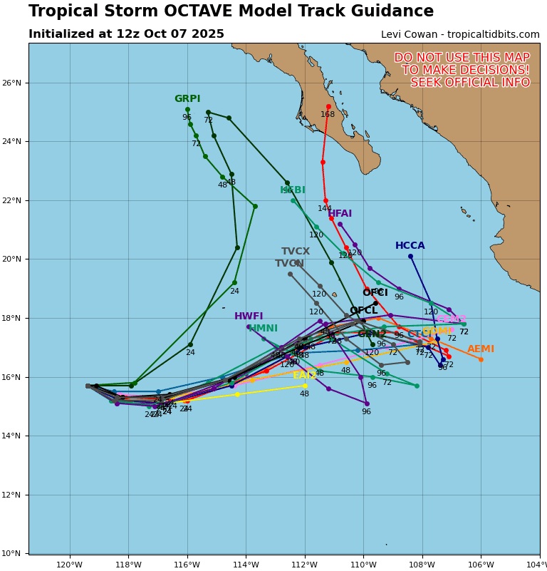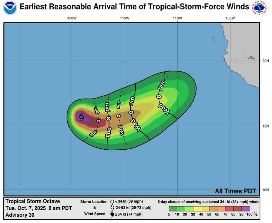 Tropical Cyclone 15E (Octave) is located about 780 miles southwest of the southern tip of Baja California