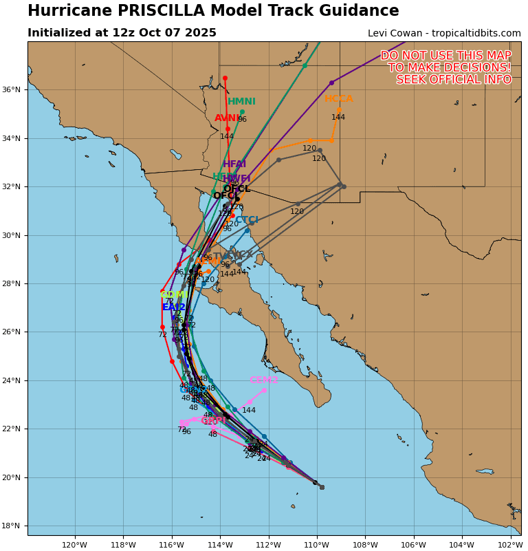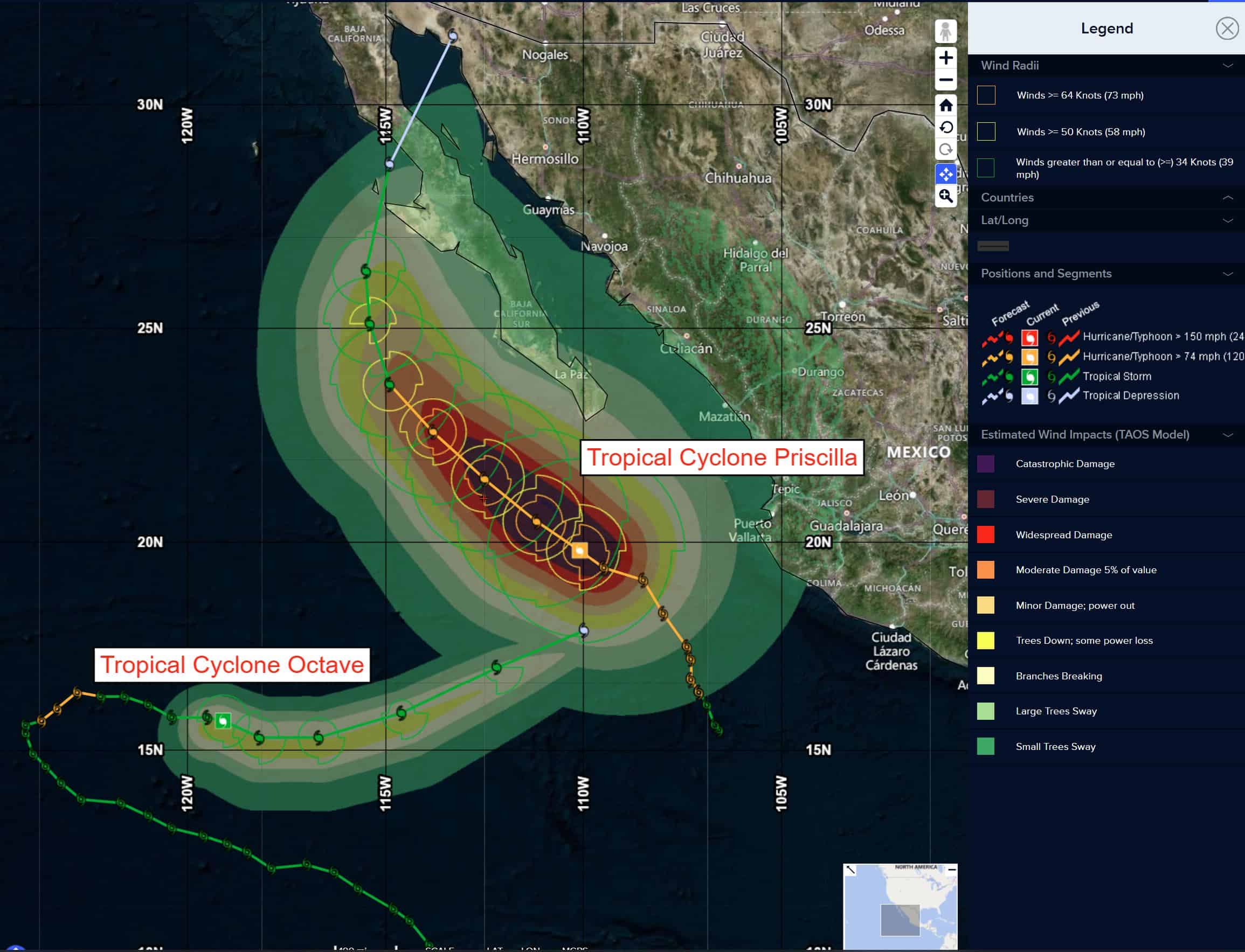 SURF: Swells generated by Priscilla are affecting portions of the coast of southwestern and west-central Mexico, as well as portions of the coast of the southern Baja California peninsula. These swells are likely to cause life-threatening surf and rip current conditions.