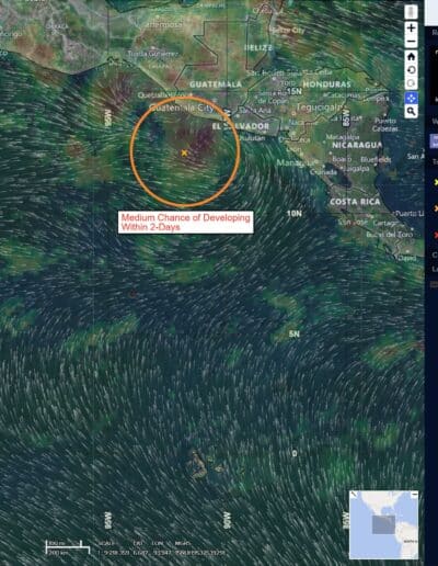 >>> Disorganized showers and thunderstorms have increased in coverage in association with a broad area of low pressure located a short distance offshore of Guatemala.