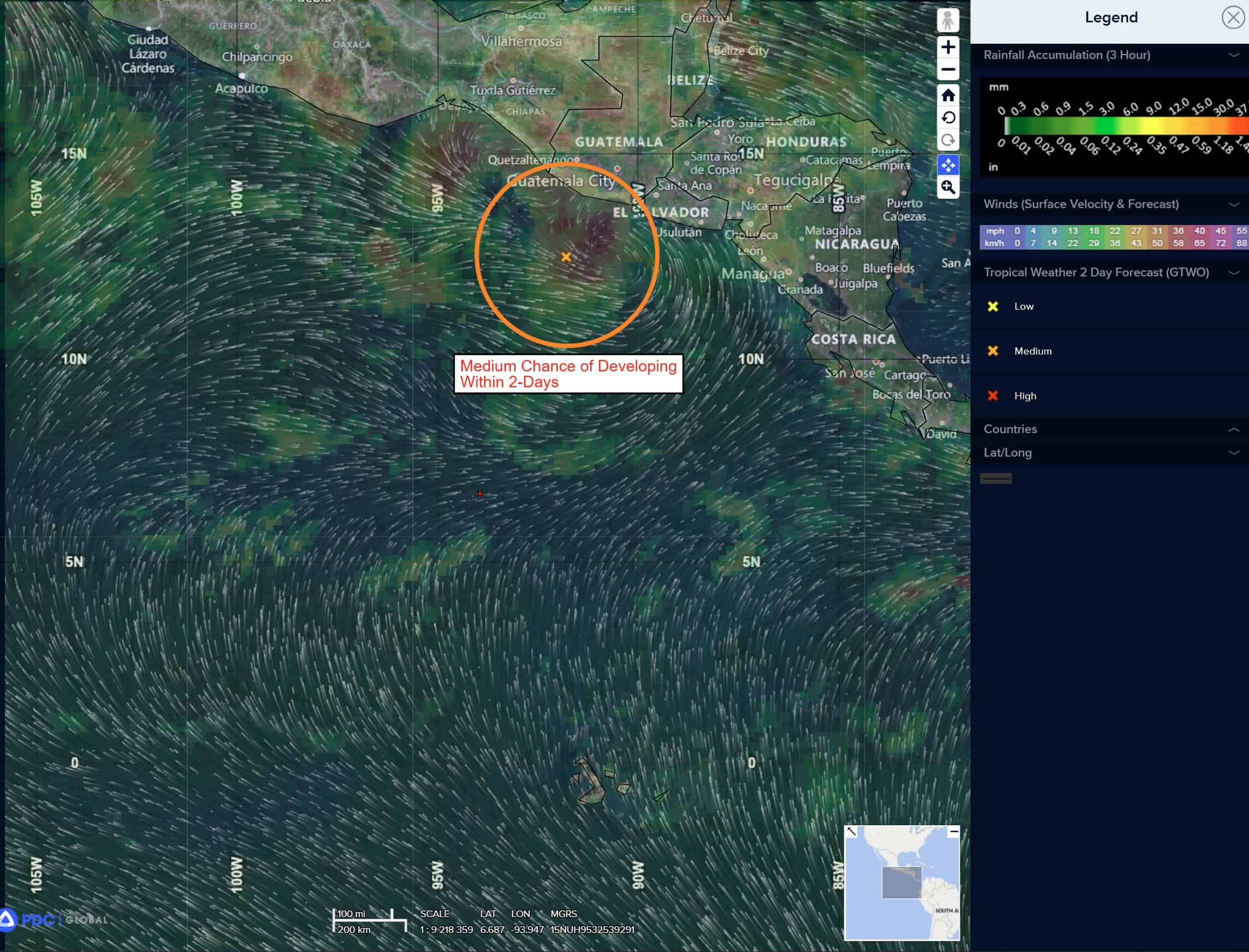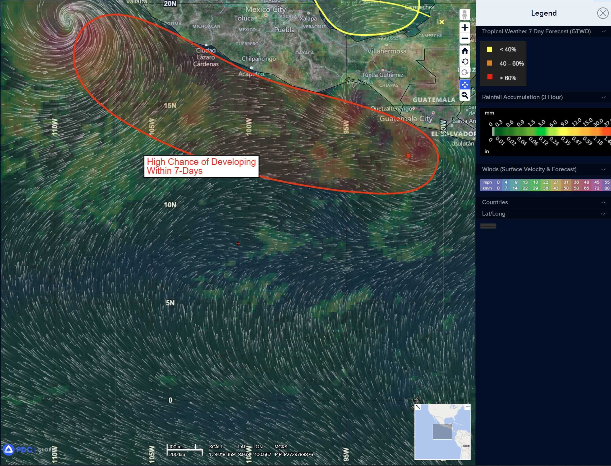 Regardless of development, this system is likely to produce periods of heavy rainfall over portions of Guatemala today, and along the southern coast of Mexico through the end of the week.