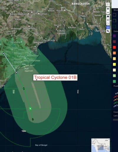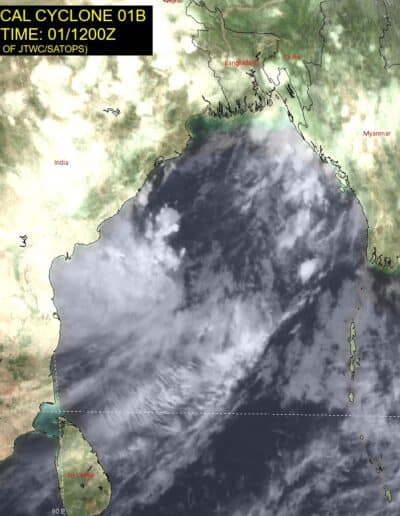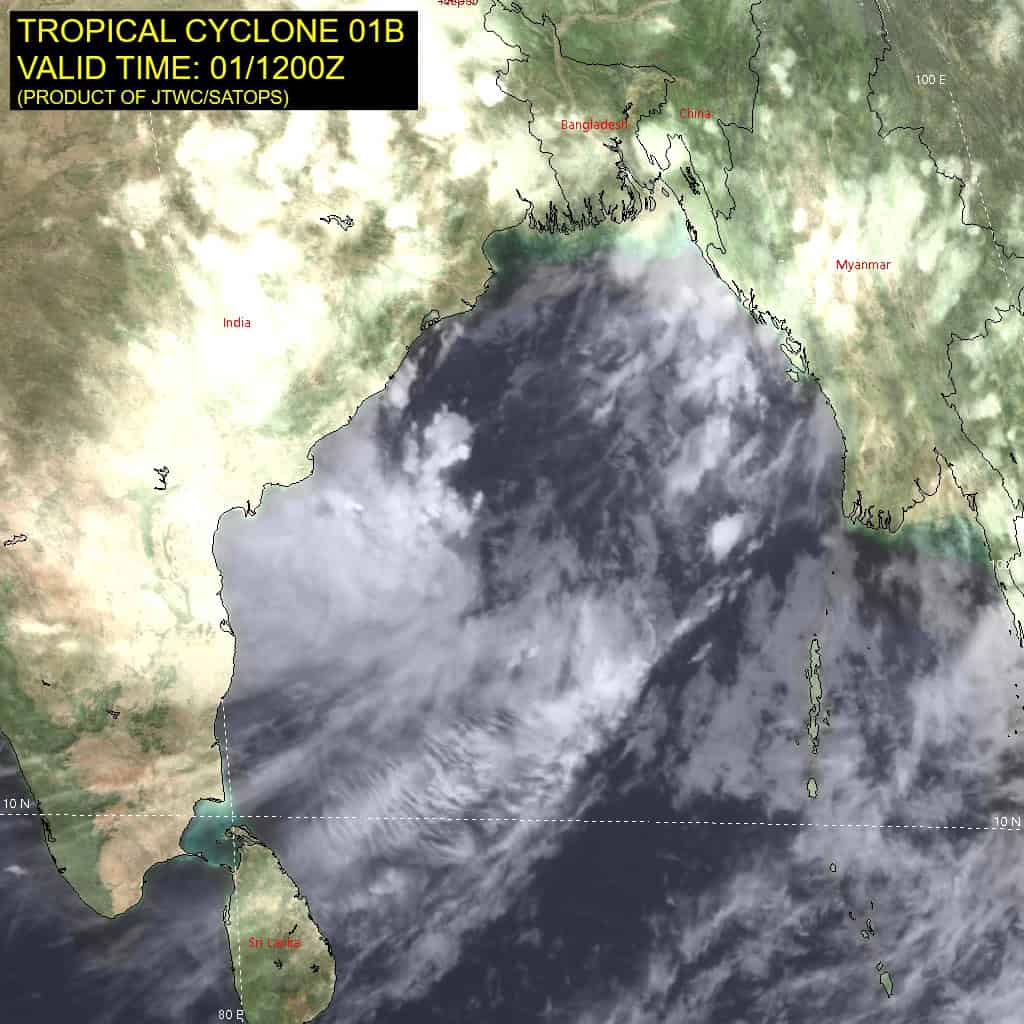 Tropical Cyclone 01B is located about 387 NM south-southwest of Kolkata, India