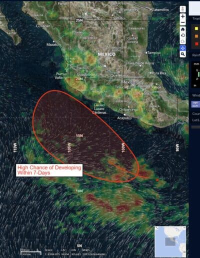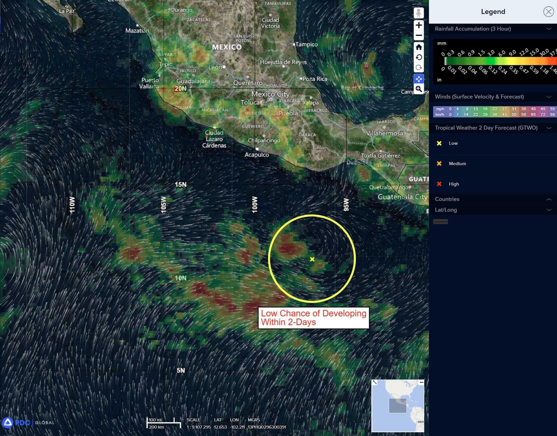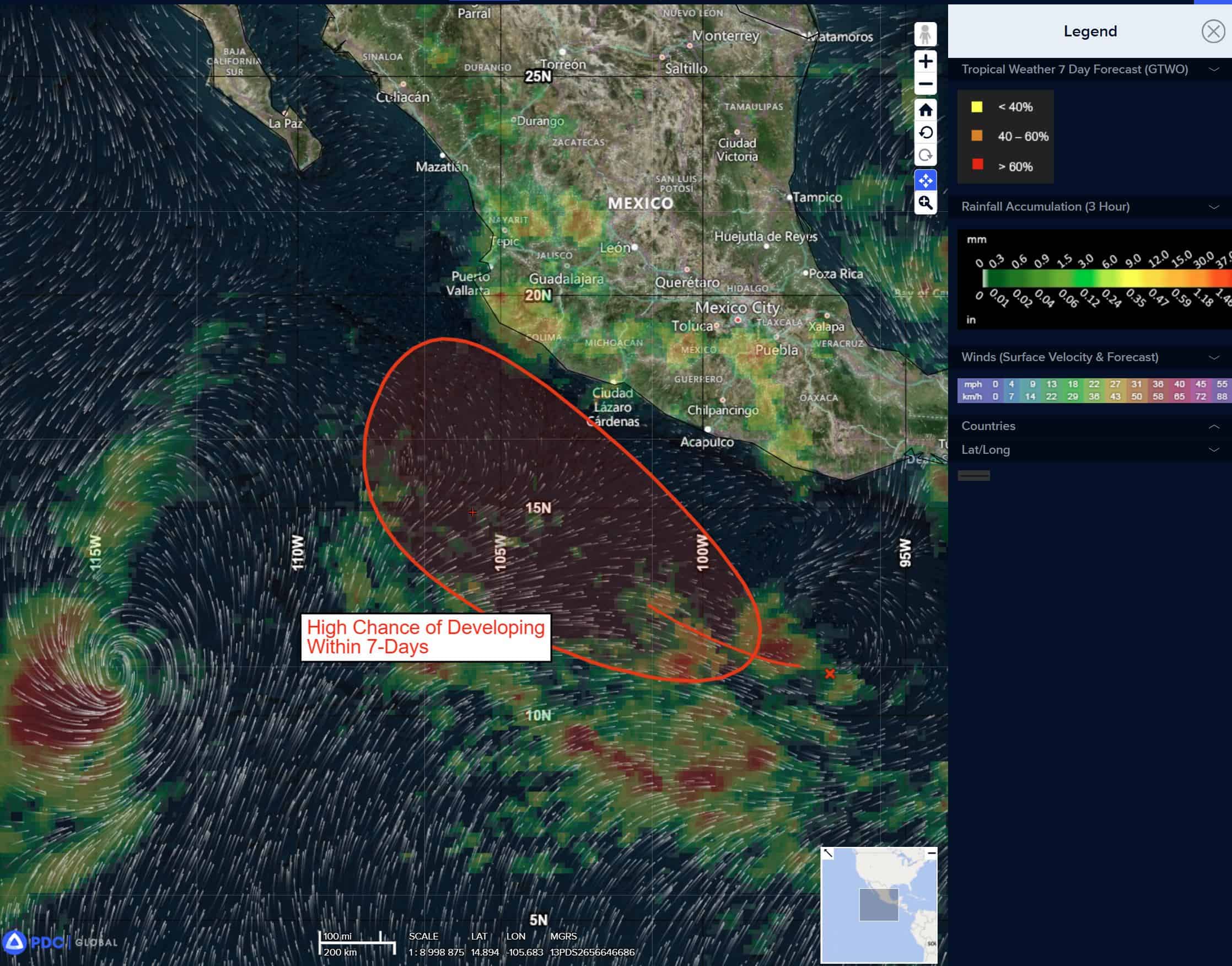 >>> A trough of low pressure located a few hundred miles off the coast of southern and southwestern Mexico is producing a large area of disorganized showers and thunderstorms. Environmental conditions appear conducive for gradual development, and a tropical depression is likely to form Friday night or over the weekend while the system moves generally west-northwestward, remaining parallel to but offshore of the southwestern coast of Mexico. Interests along the southwestern coast of Mexico should closely monitor the progress of this system.