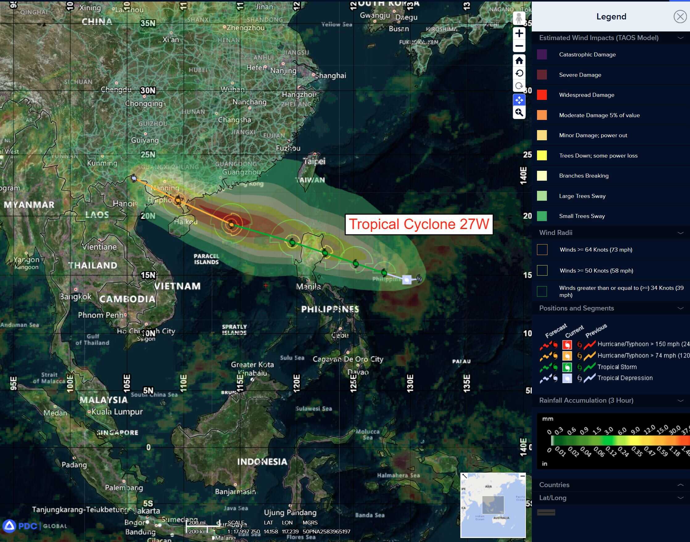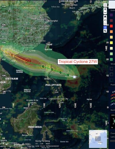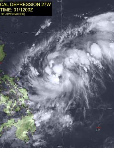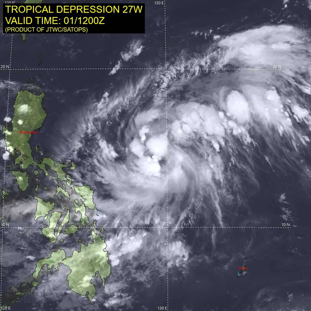 Tropical Cyclone 27W is located about 350 NM east of Manila, Philippines