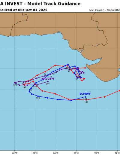 Models are in good general agreement on steady development over the next 48 hours. The system is expected to have very slow track speeds and possible erratic motion over the next 24-48 hours due to the placement between ridging to both the