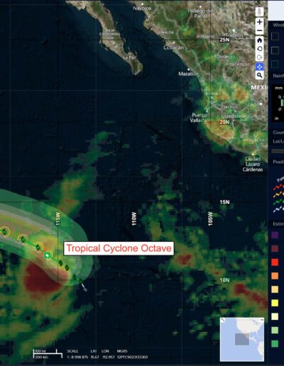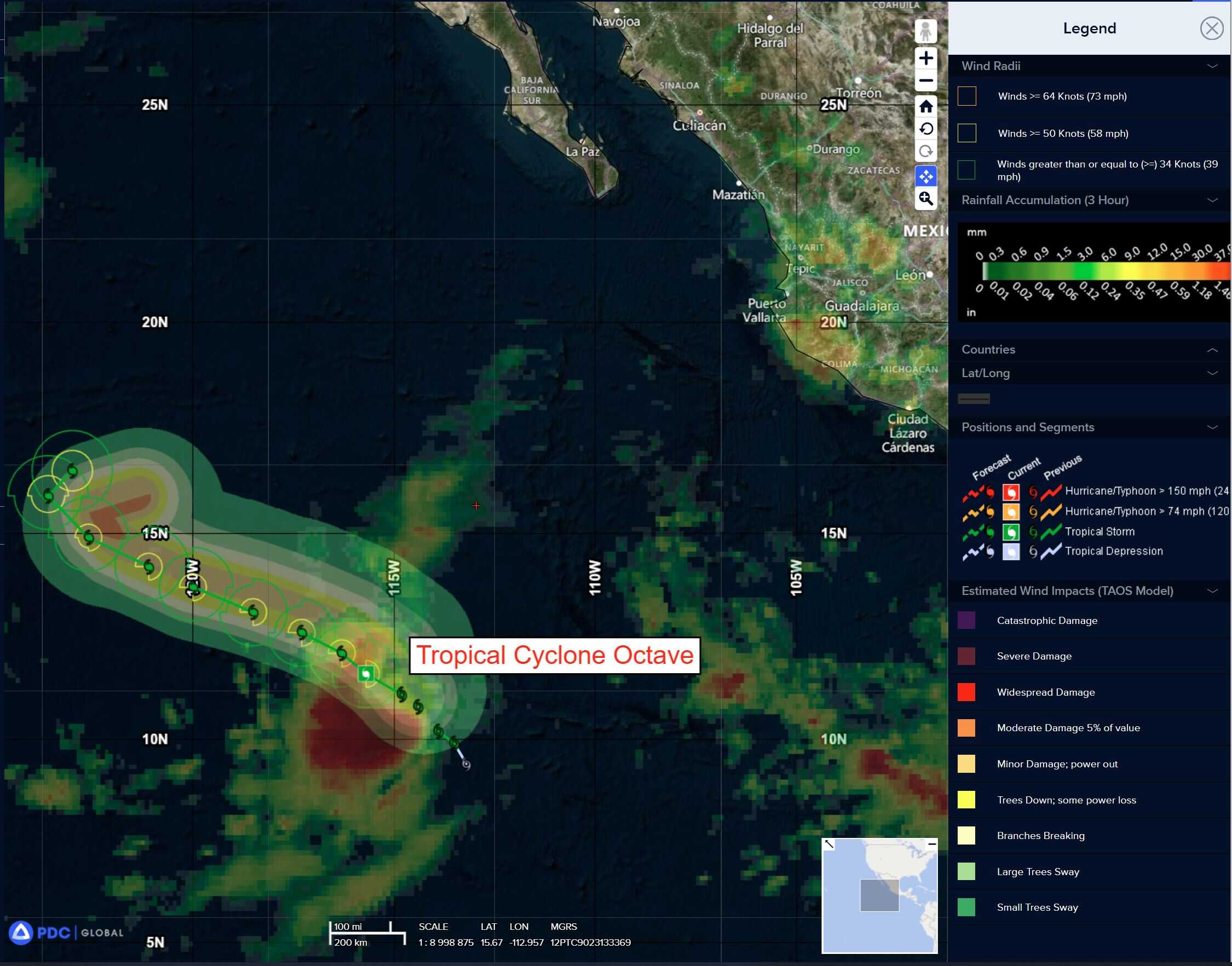 Tropical Cyclone 15E (Octave) is located about 875 miles south-southwest of the southern tip of Baja California