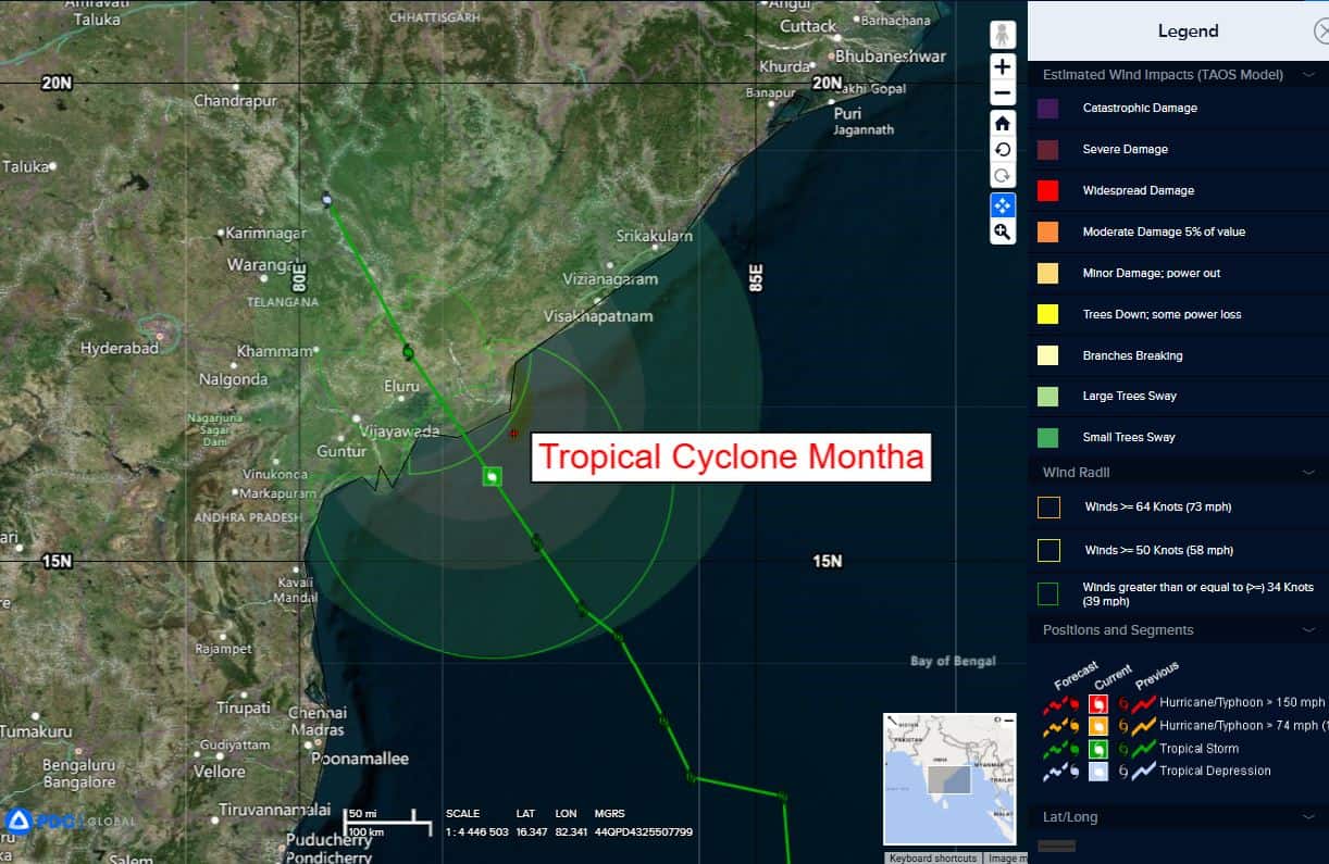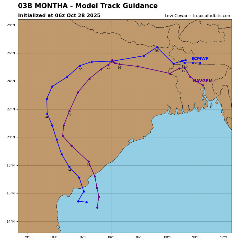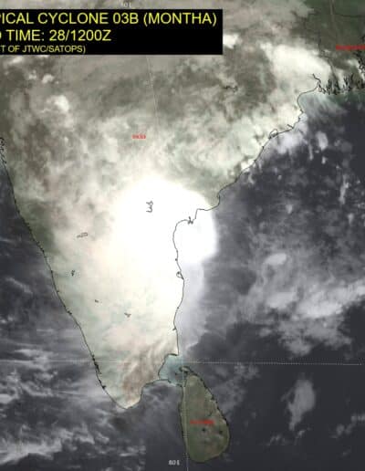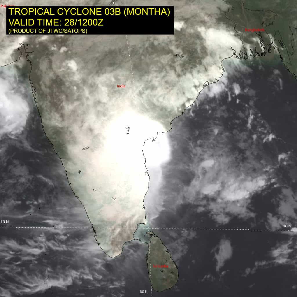 Tropical Cyclone 03B Montha…is located approximately 564 NM southwest of Kolkata, India