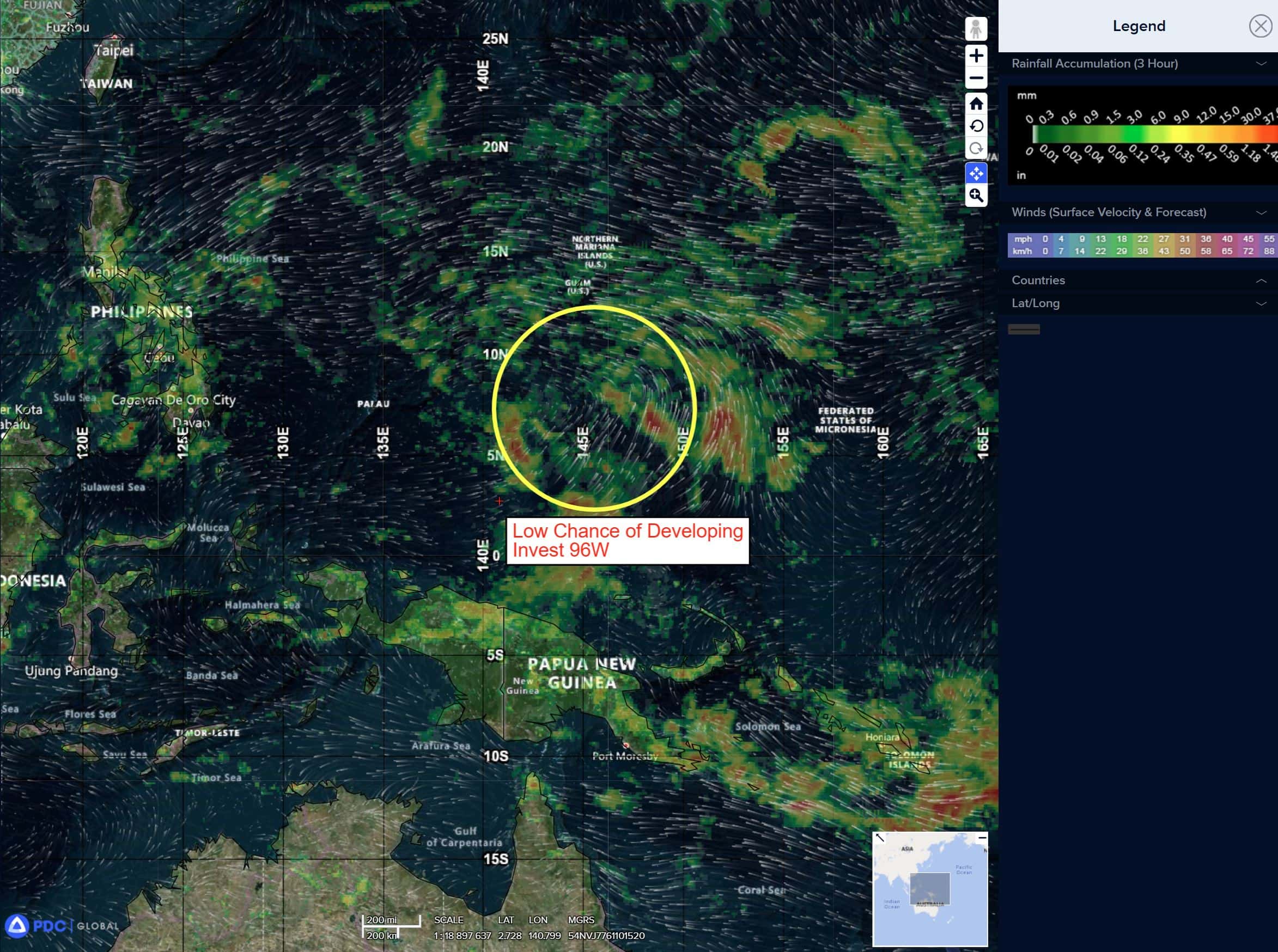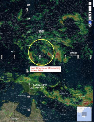 There’s an area of disturbed weather being referred to as Invest 96W, which is located approximate 478 NM south of Guam
