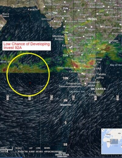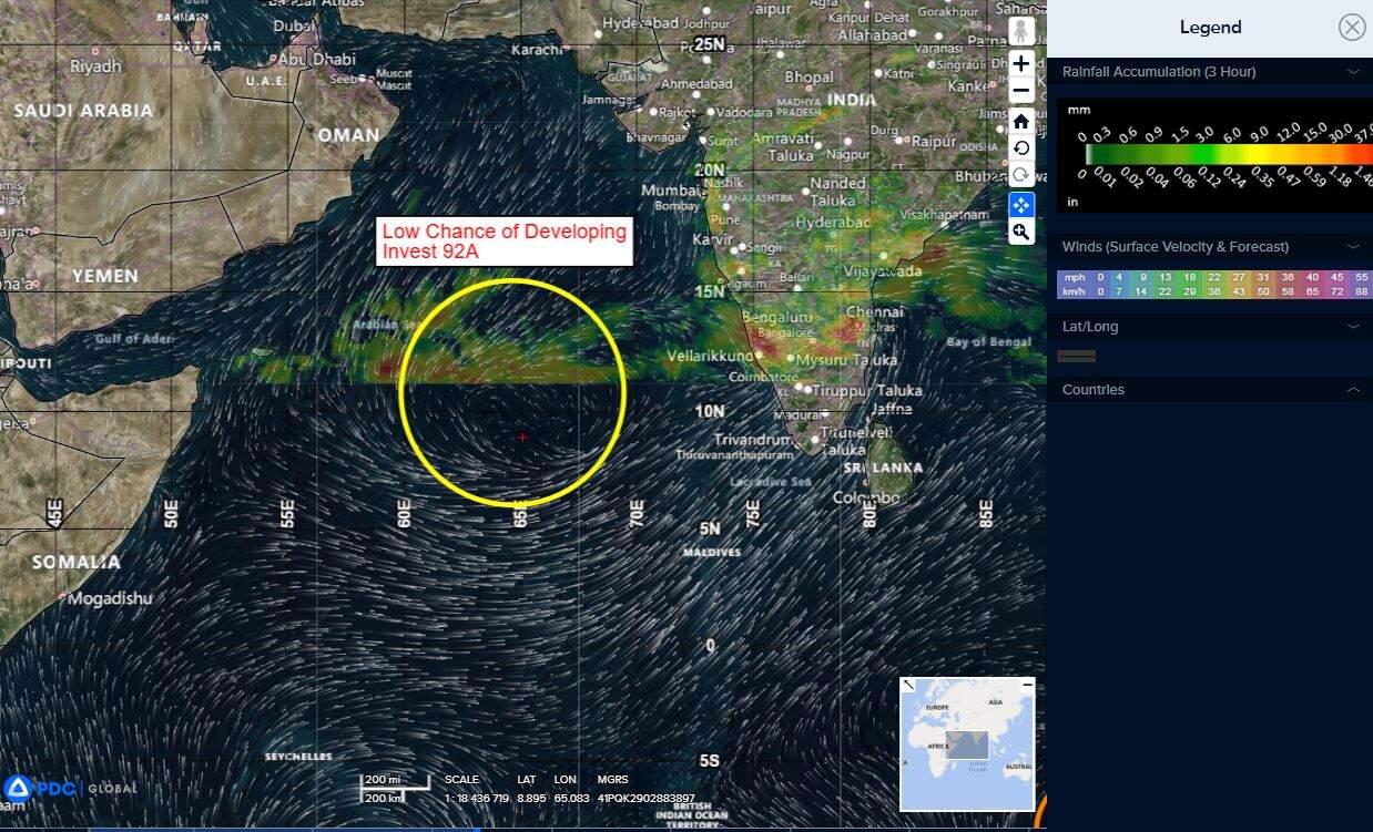 >>> There’s an area of disturbed weather being referred to as Invest 92A…which is located approximately 495 NM west of Cochin.