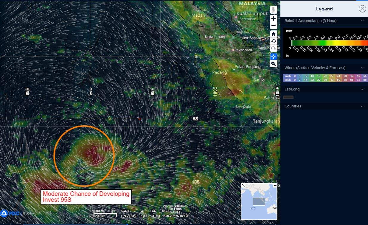 >>> There’s an area of disturbed weather being referred to as Invest 95S…which is located approximately 443 NM northwest of Cocos Islands.