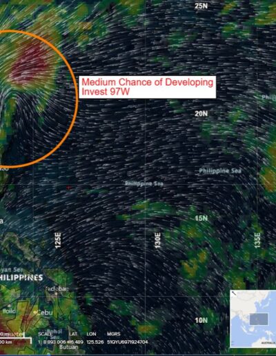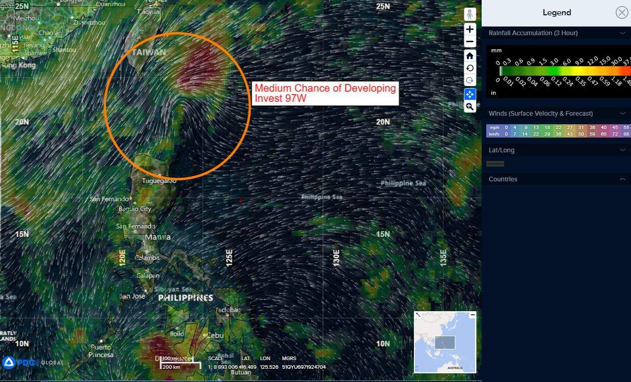 >>> There’s an area of disturbed weather being referred to as Invest 97W…which is located approximately 156 NM east of Kaohsiung, Taiwan