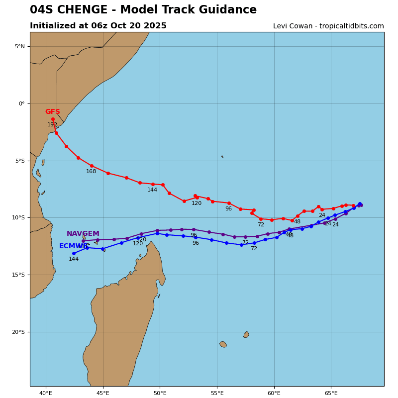 The ecmwf, and the other members of the consensus, also depict the ridge building, but it moves west at a much slower rate and remains on a more east-west orientation, which allows TC 04S to track generally westward after 48 hours, passing north of the northern tip of Madagascar.