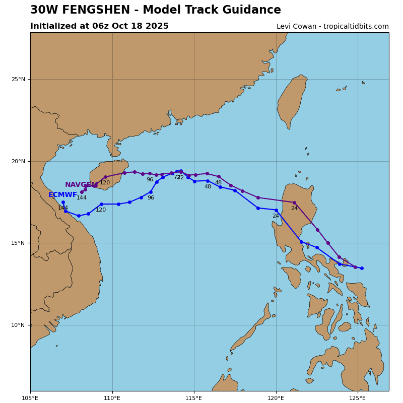 As the system moves across the rugged terrain of Luzon it will weaken significantly, but quickly reform on the west side of Luzon. Once reestablished west of the Philippines, TS 30W will once again quickly intensify under favorable conditions, reaching a peak of 70 knots by 72 hours.