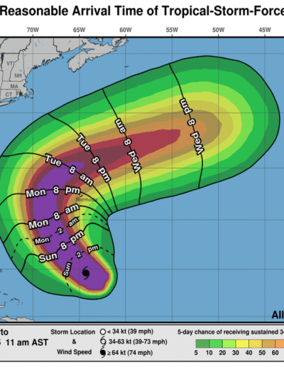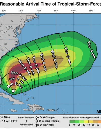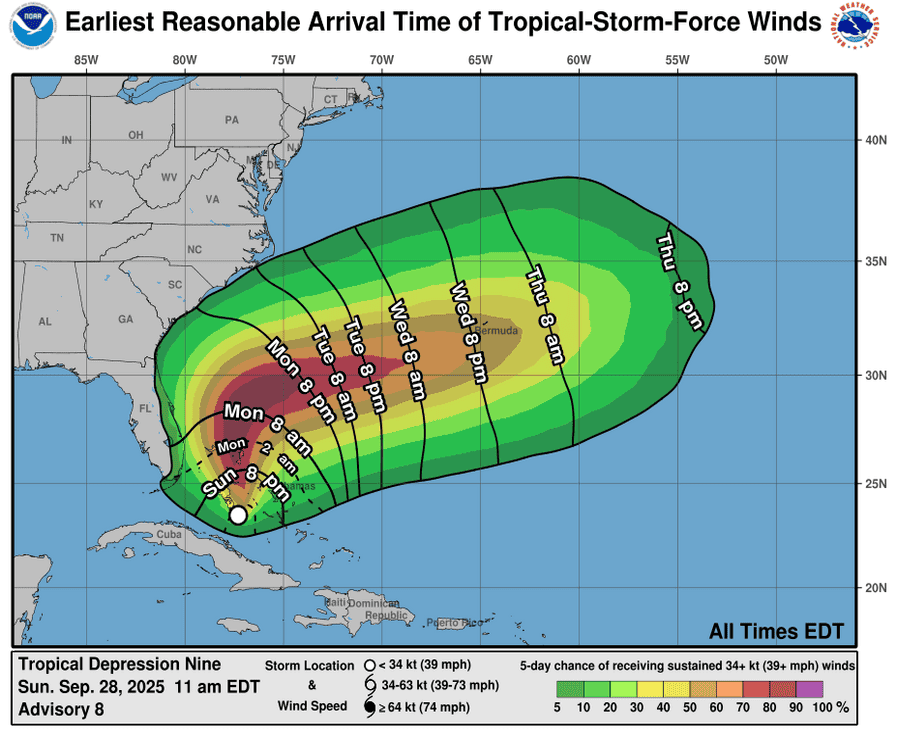 WIND: Tropical storm conditions are expected in the central Bahamas beginning later today and in the northwestern Bahamas late this afternoon. Tropical storm conditions are possible in the watch area along the east coast of Florida on Monday.