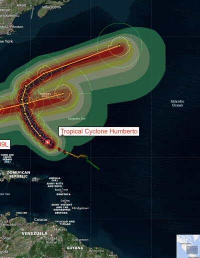 Tropical Cyclone 08L (Humberto)…is located about 400 south-southwest of Bermuda
