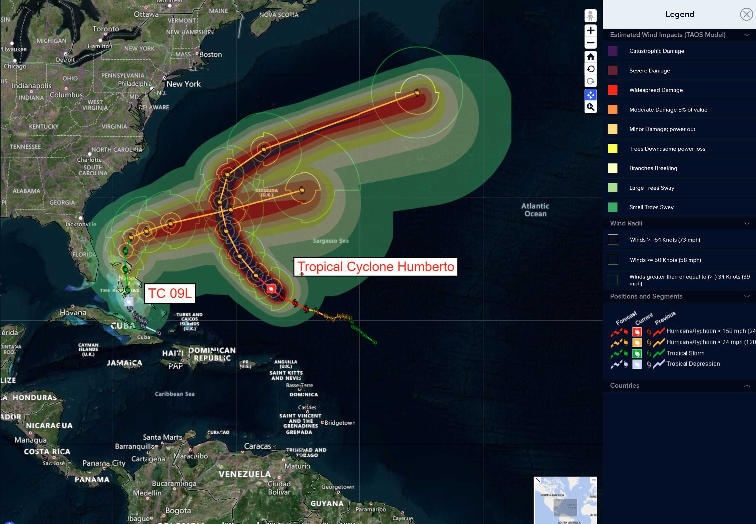 SURF: Swells generated by Humberto will continue to affect portions of the northern Leeward Islands, the Virgin Islands, Puerto Rico, and Bermuda through much of this week. Swells from Humberto will also affect the U.S. East Coast beginning Monday. These swells are likely to cause life-threatening surf and rip current conditions.