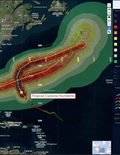 RAINFALL: Hurricane Humberto is expected to bring rainfall of 1 to 2 inches – 25 to 50 mm – to Bermuda Monday night through Tuesday