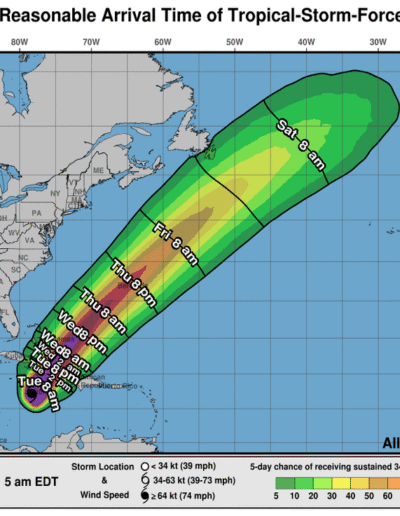 Tropical storm conditions are expected to begin in eastern Cuba today, with hurricane conditions expected in the hurricane warning area starting tonight into Wednesday morning. Tropical storm conditions are expected in Haiti later today and Wednesday.